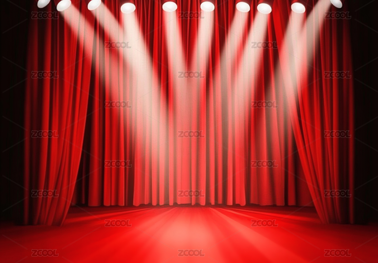 舞台上的红色幕布与聚光灯