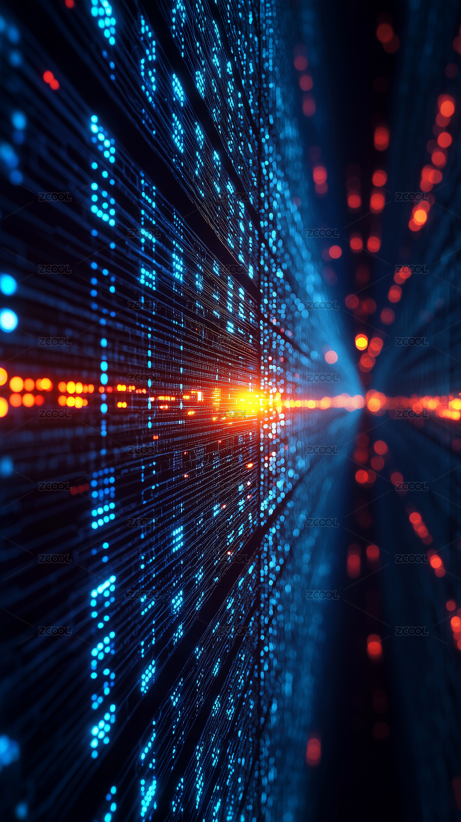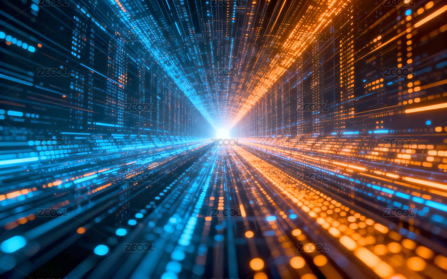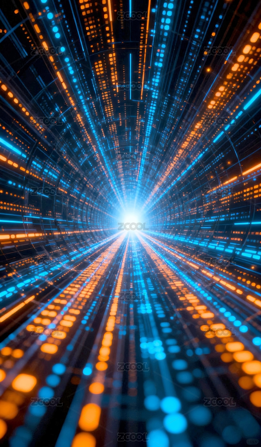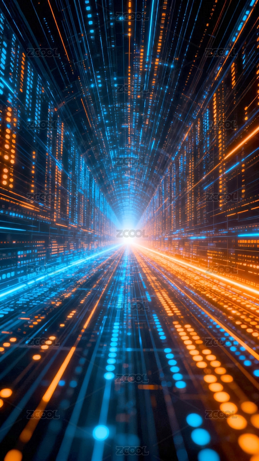 主视觉,商业,壁纸,数据,隧道,科幻风,科技,场景,蓝色,橙色