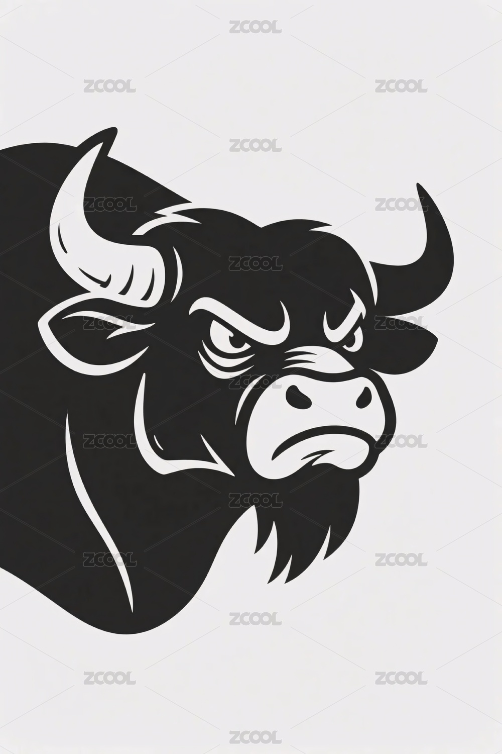北美野牛头像徽章矢量插画风格装饰印花插画