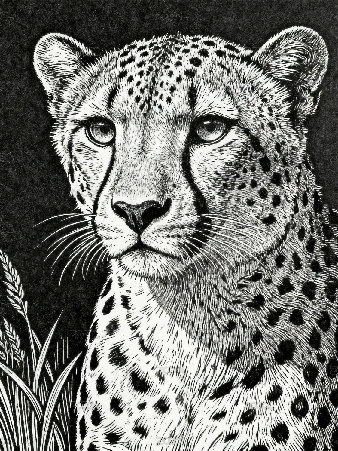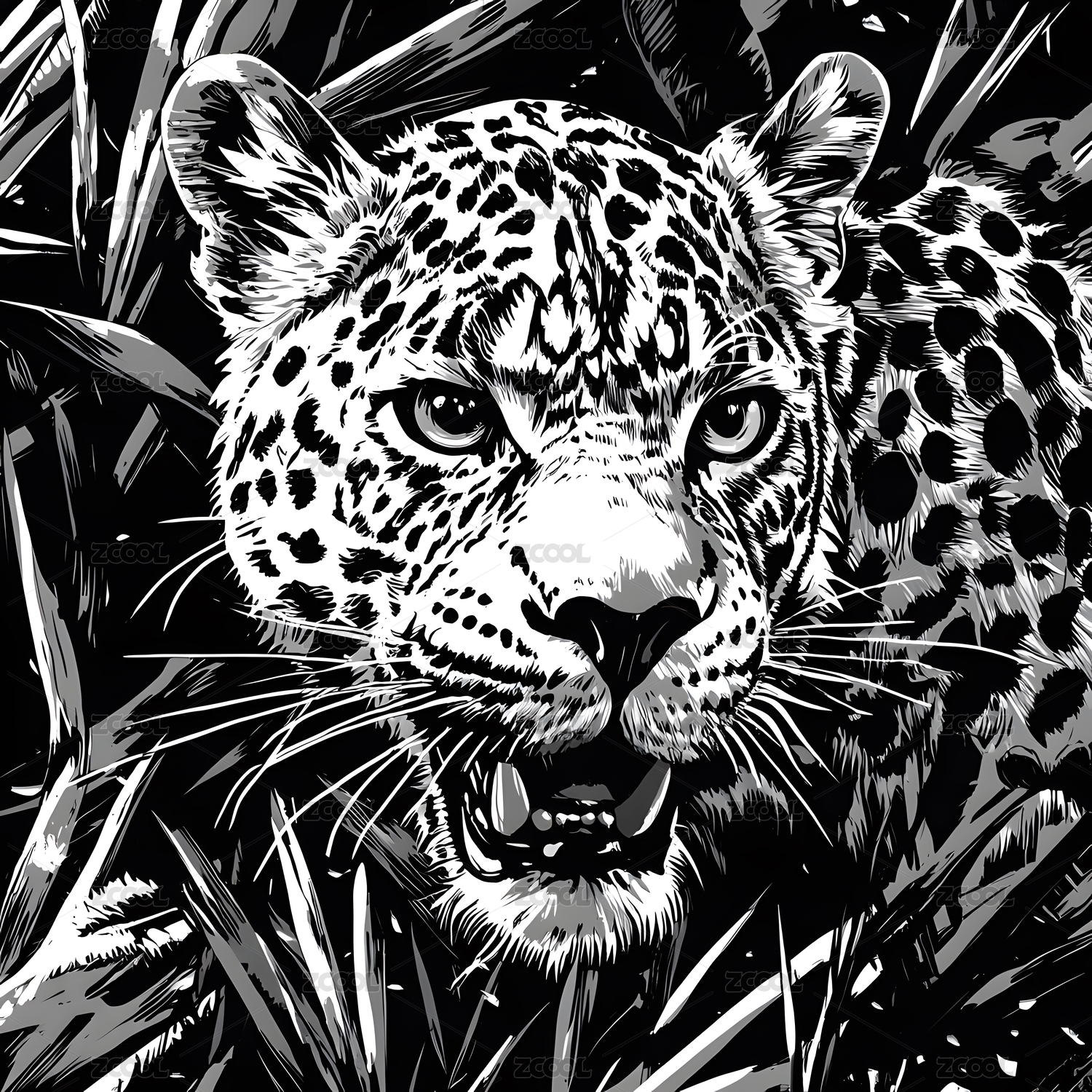 粉金色金钱猎豹头像T恤服装图案印花插画