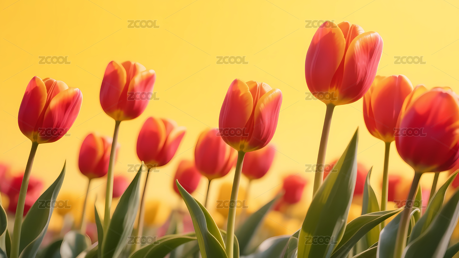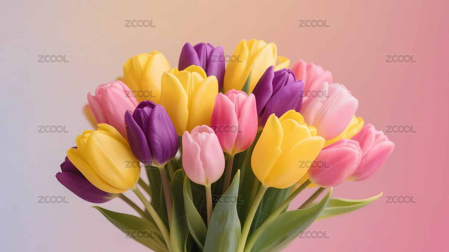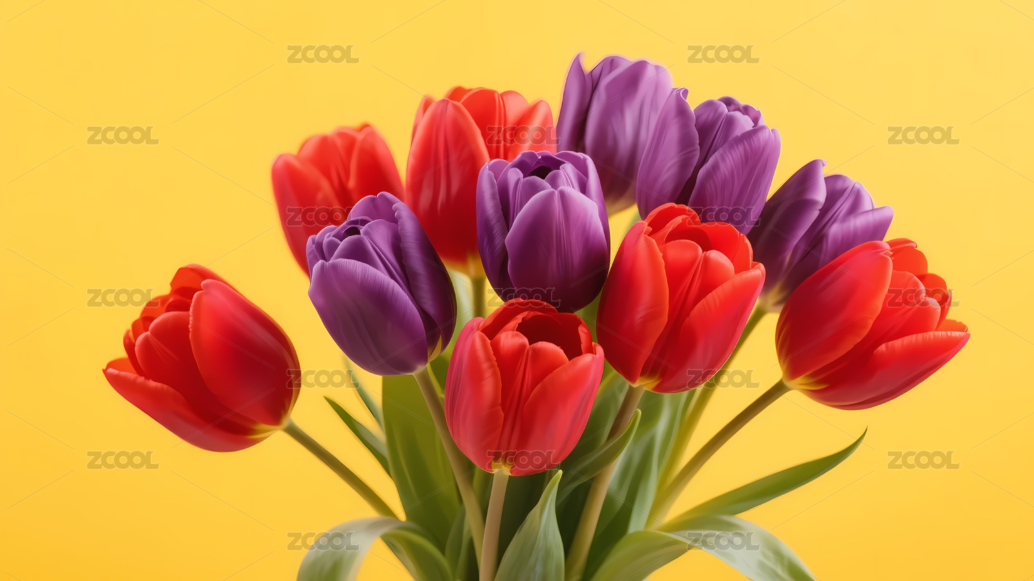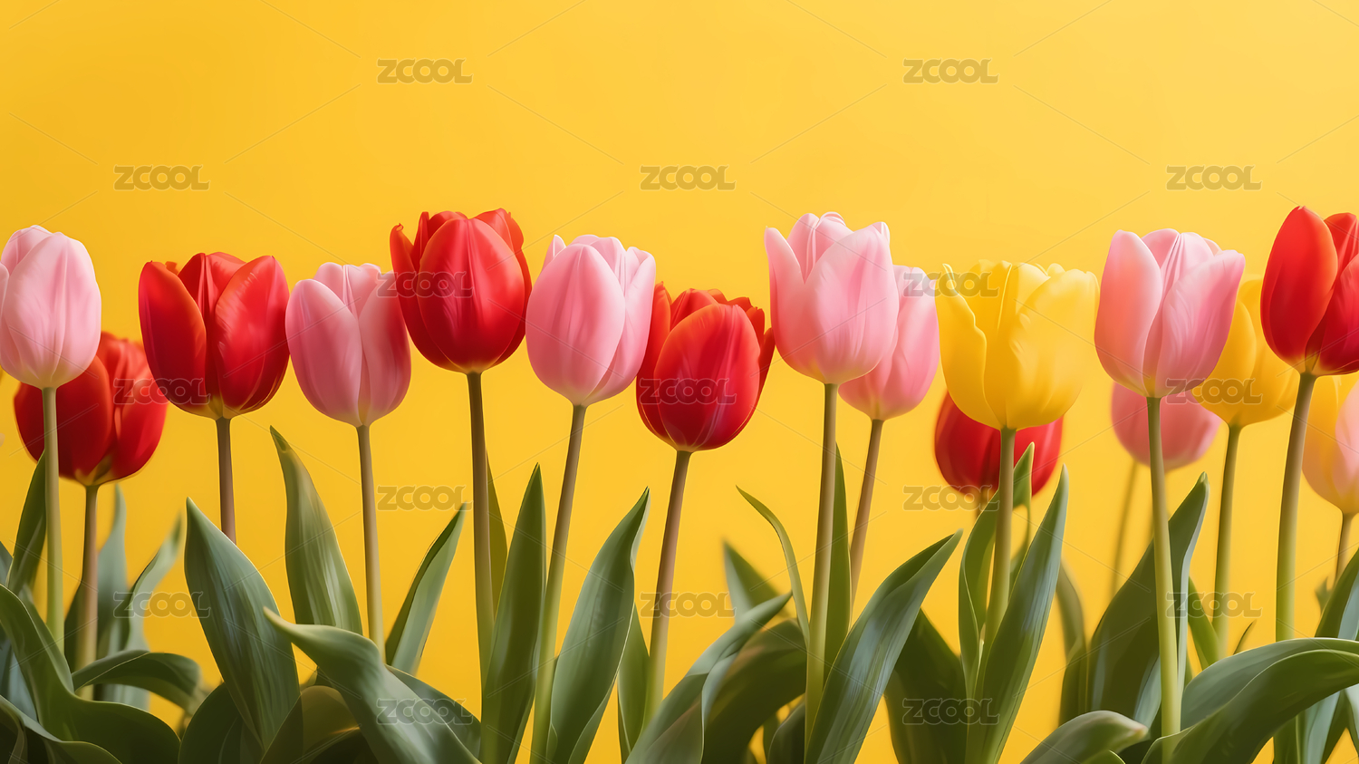 植物,自然,粉色,红色,郁金香,黄色,鲜艳,花朵,活力,春天