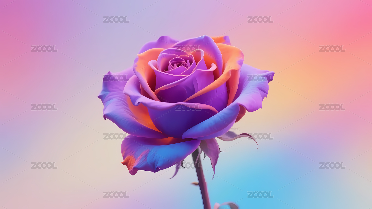 彩色玫瑰映衬紫橙渐变背景