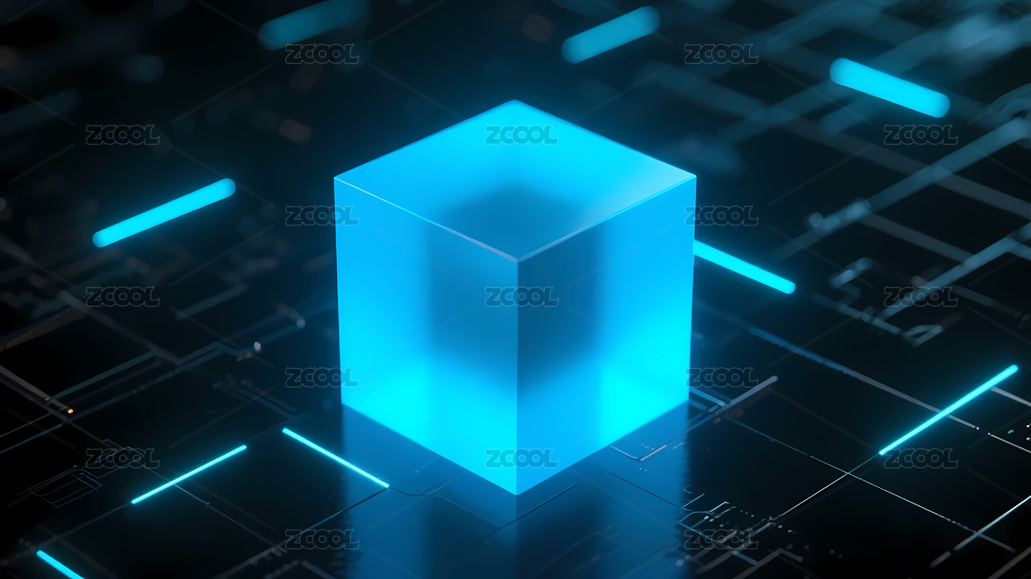蓝色立方体与科技电路