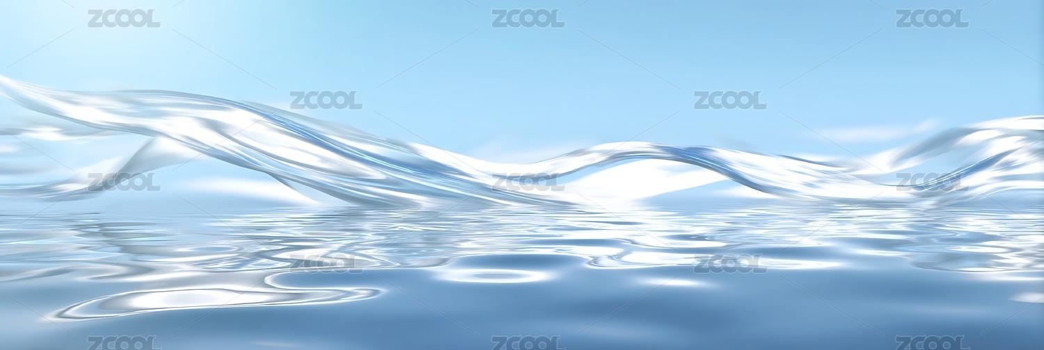 晶莹反射光影起伏波浪流淌透明液体3d插画
