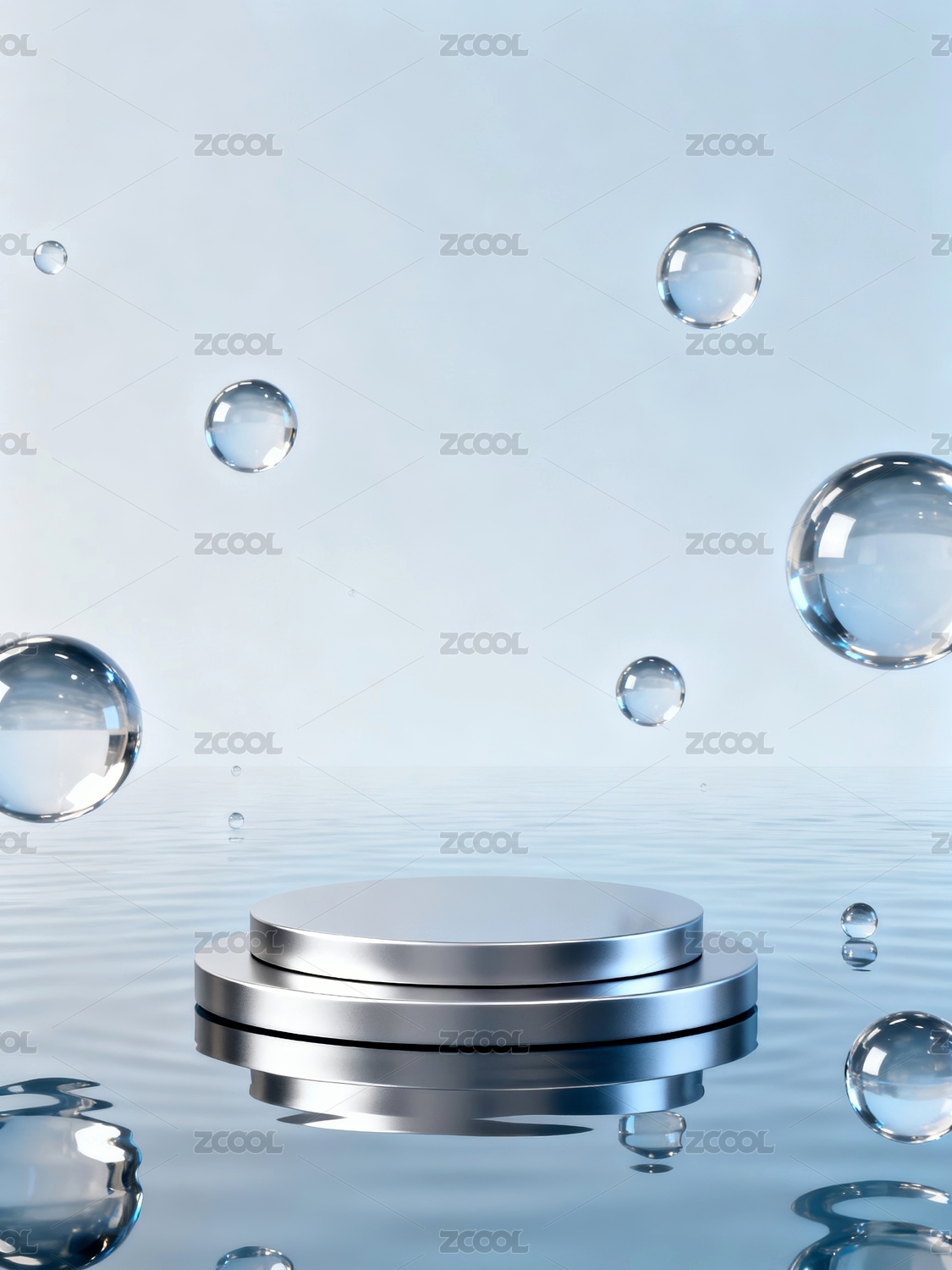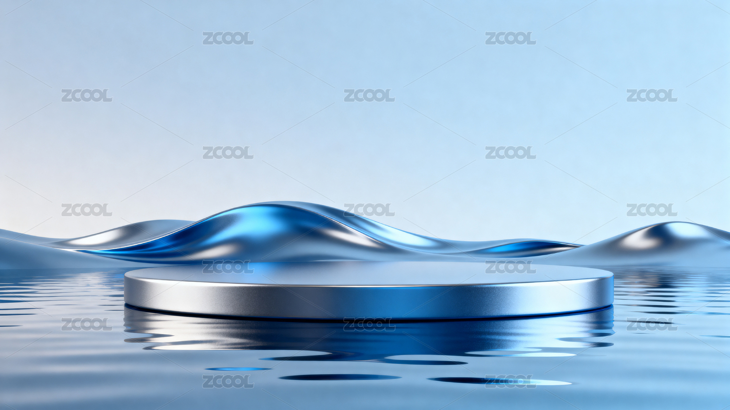 反射,金属,设计,现代,波浪,蓝色,柔和,背景,环境,圆台