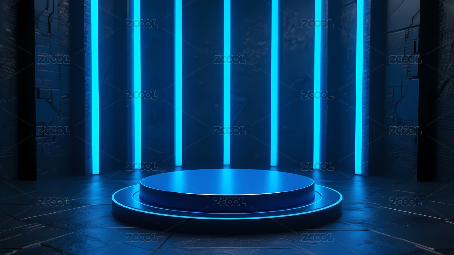 蓝色,深色,背景,圆形,科技,未来,平台,光带,冷峻,环绕