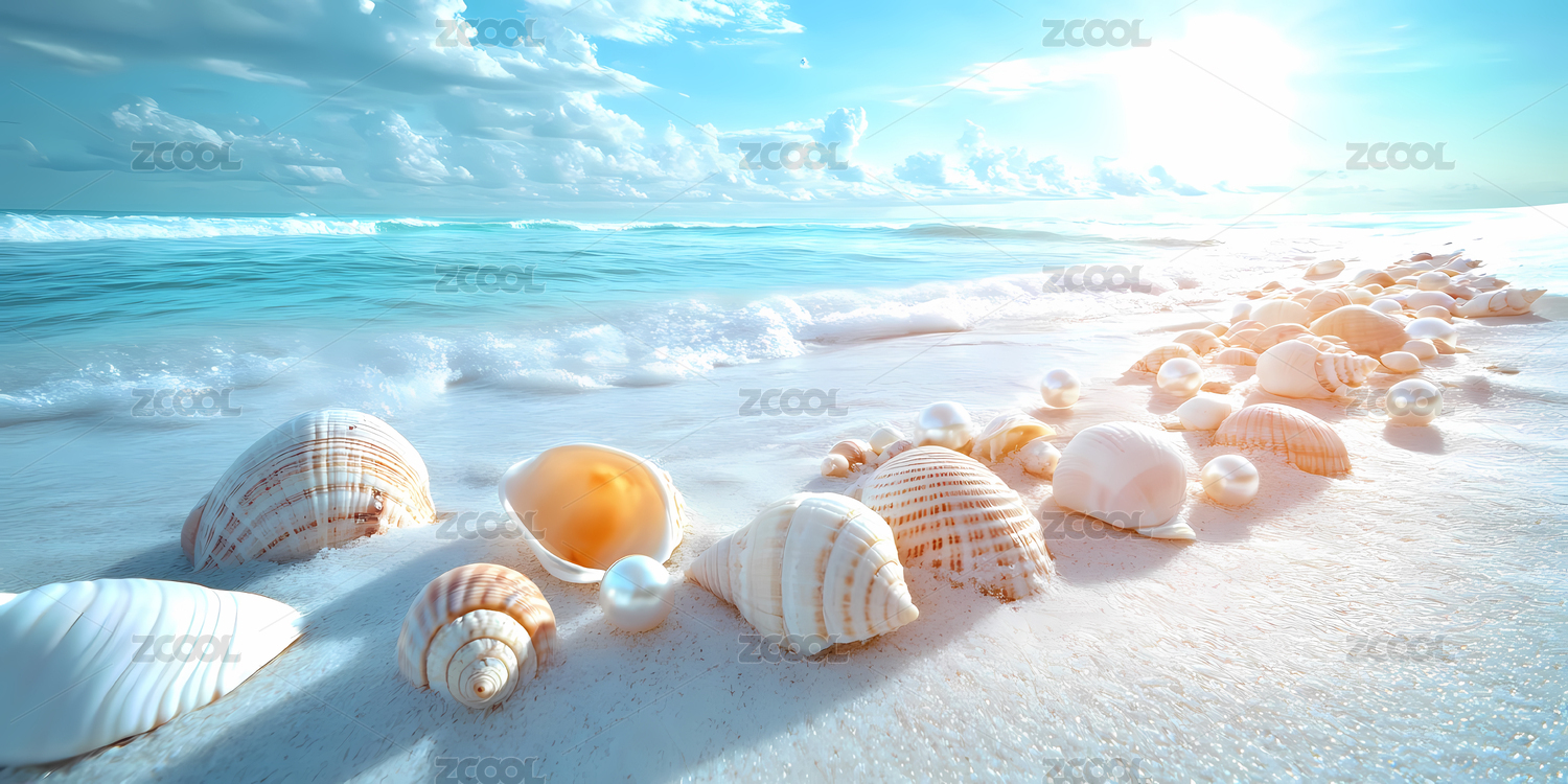 沙滩贝壳3D渲染美妆护肤时尚感背景