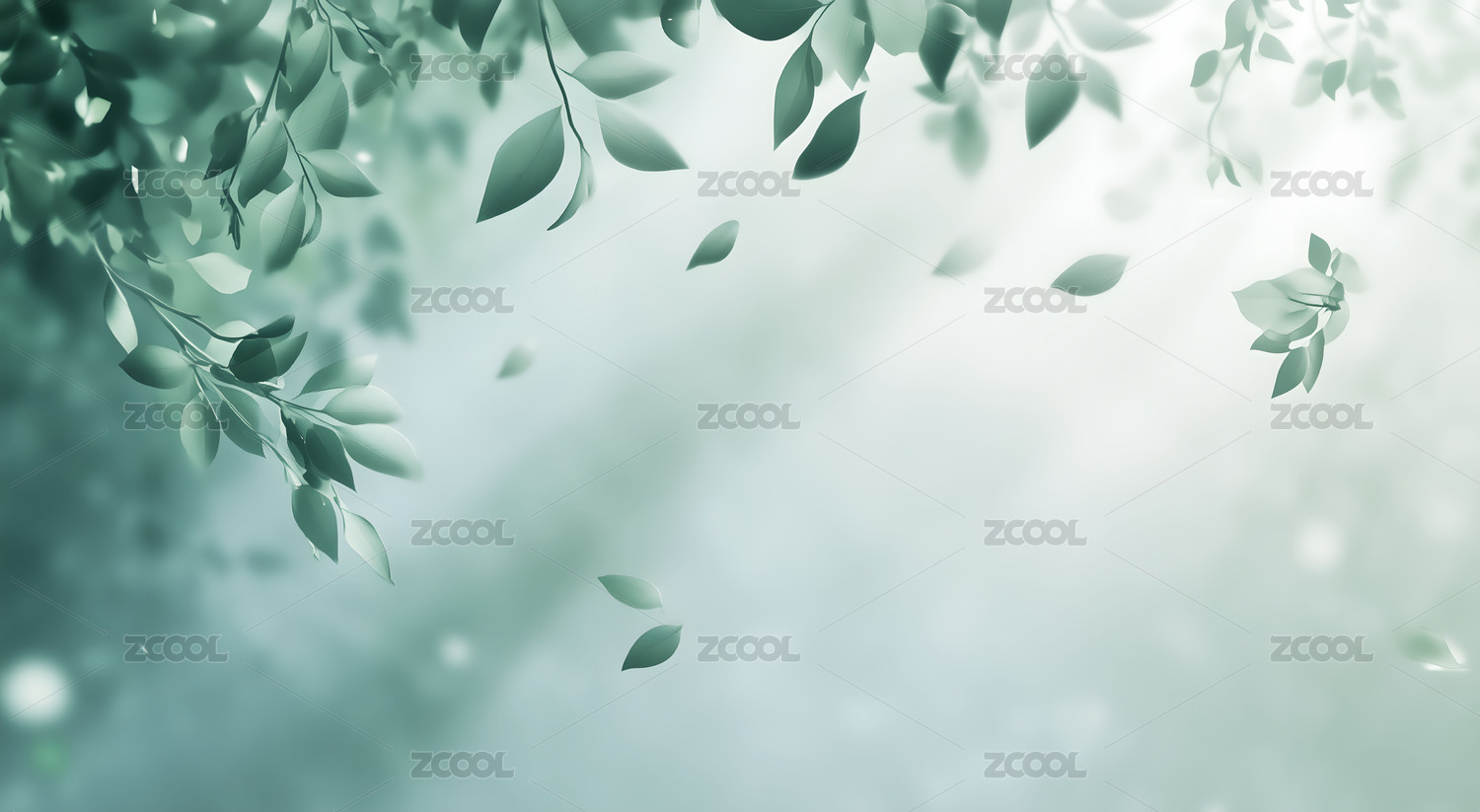 清新绿色树叶与浅蓝色艺术风景