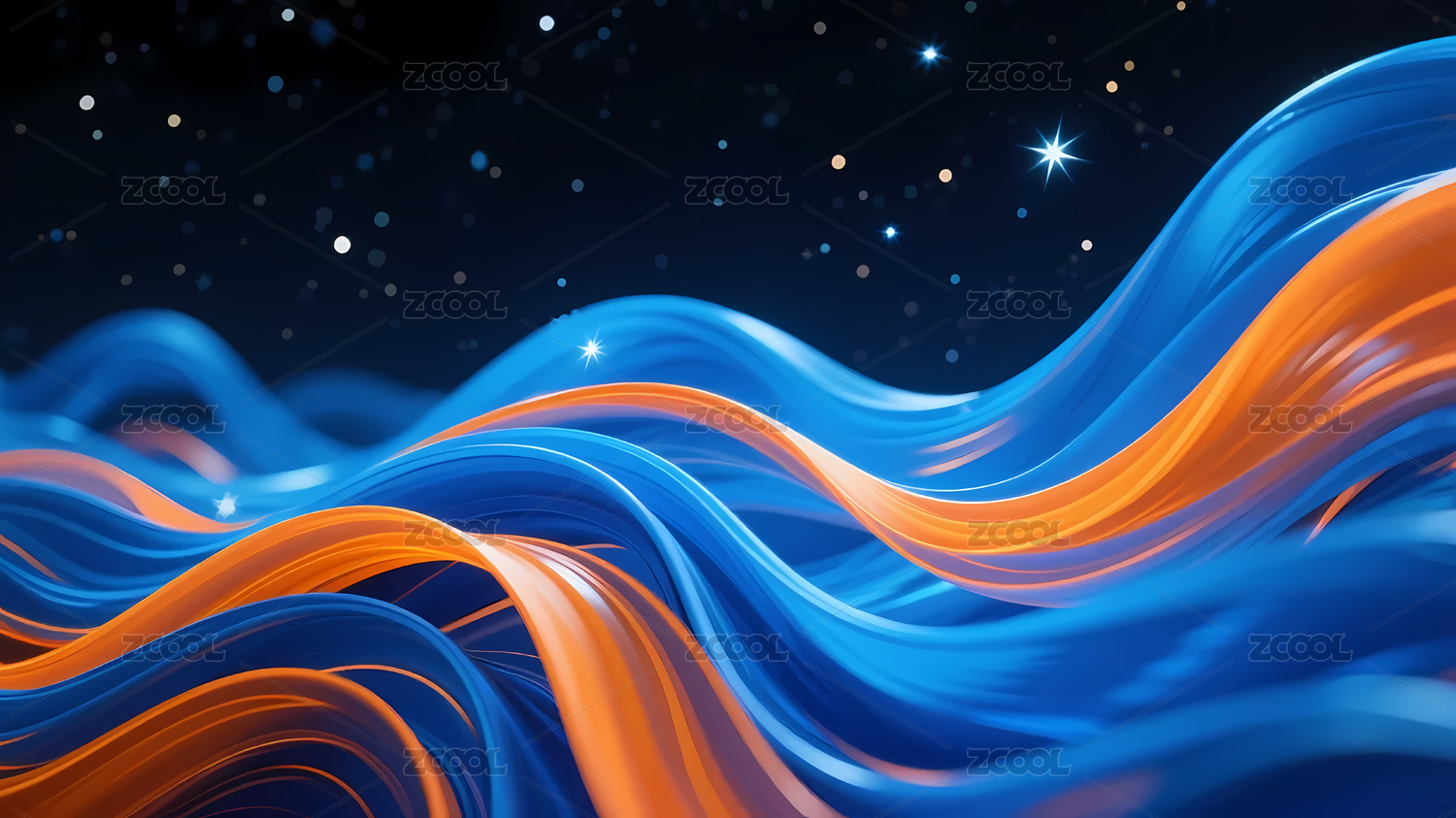 波浪,星空,渐变,深邃,蓝色,梦幻,神秘,橙色,流动,光点