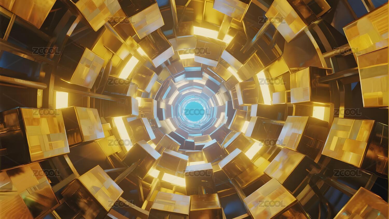 金色螺旋隧道的未来感视觉
