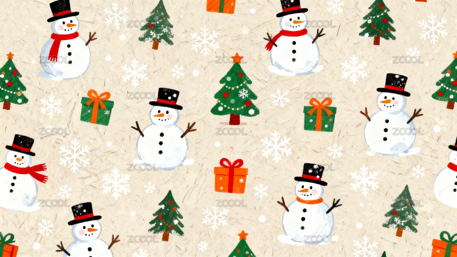 卡通圣诞雪人无缝循环图案
