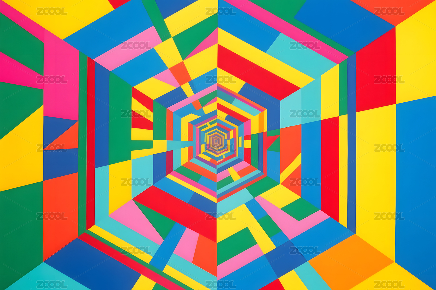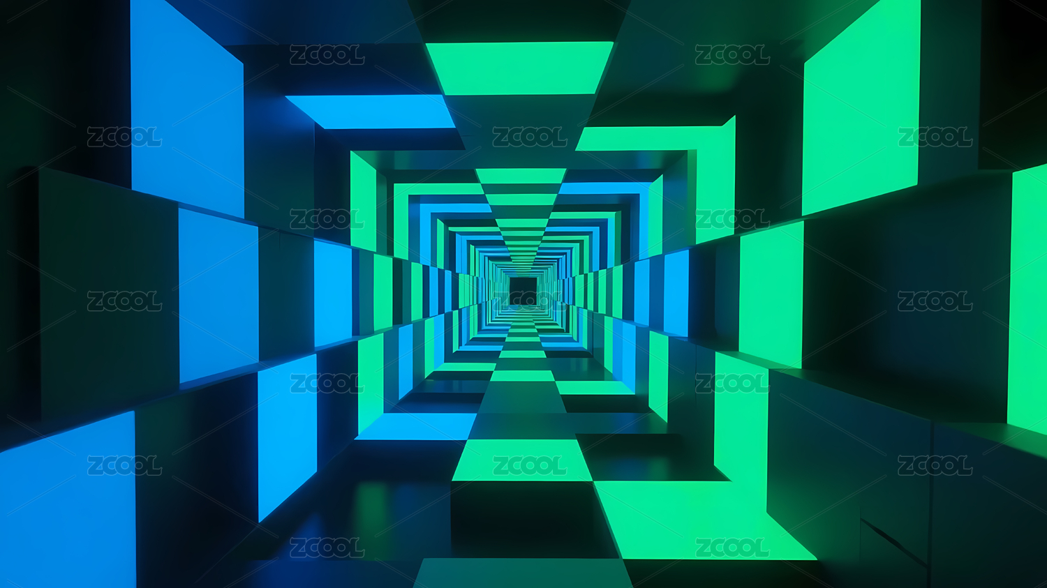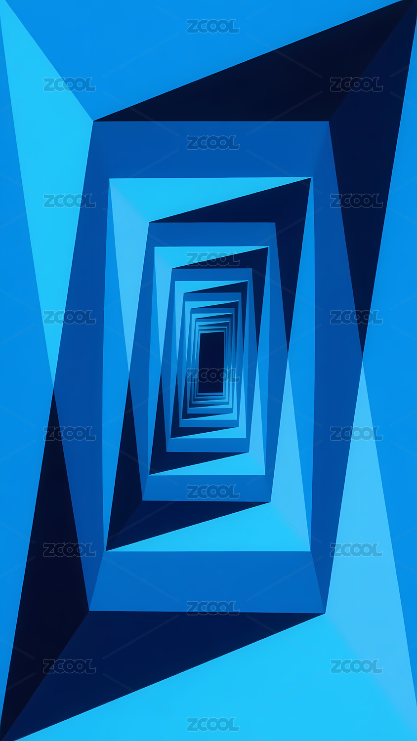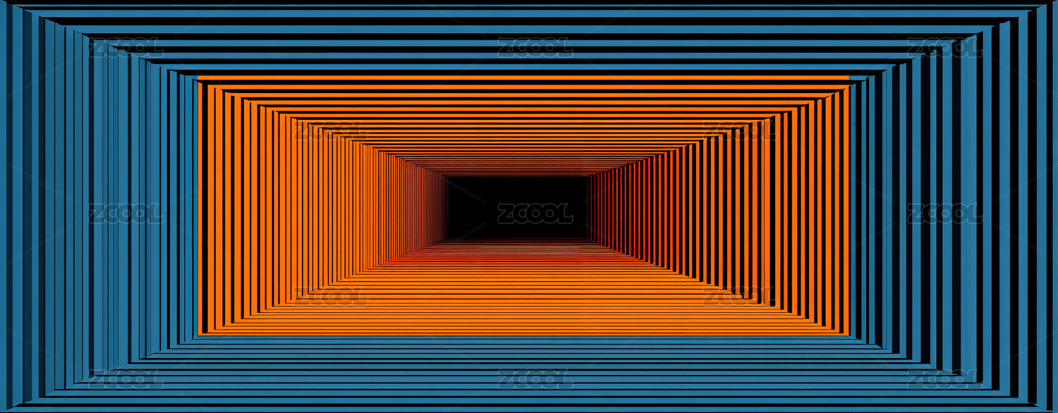 蓝色,隧道,渐变,橙色,空间,抽象,几何,方块,动感,对比