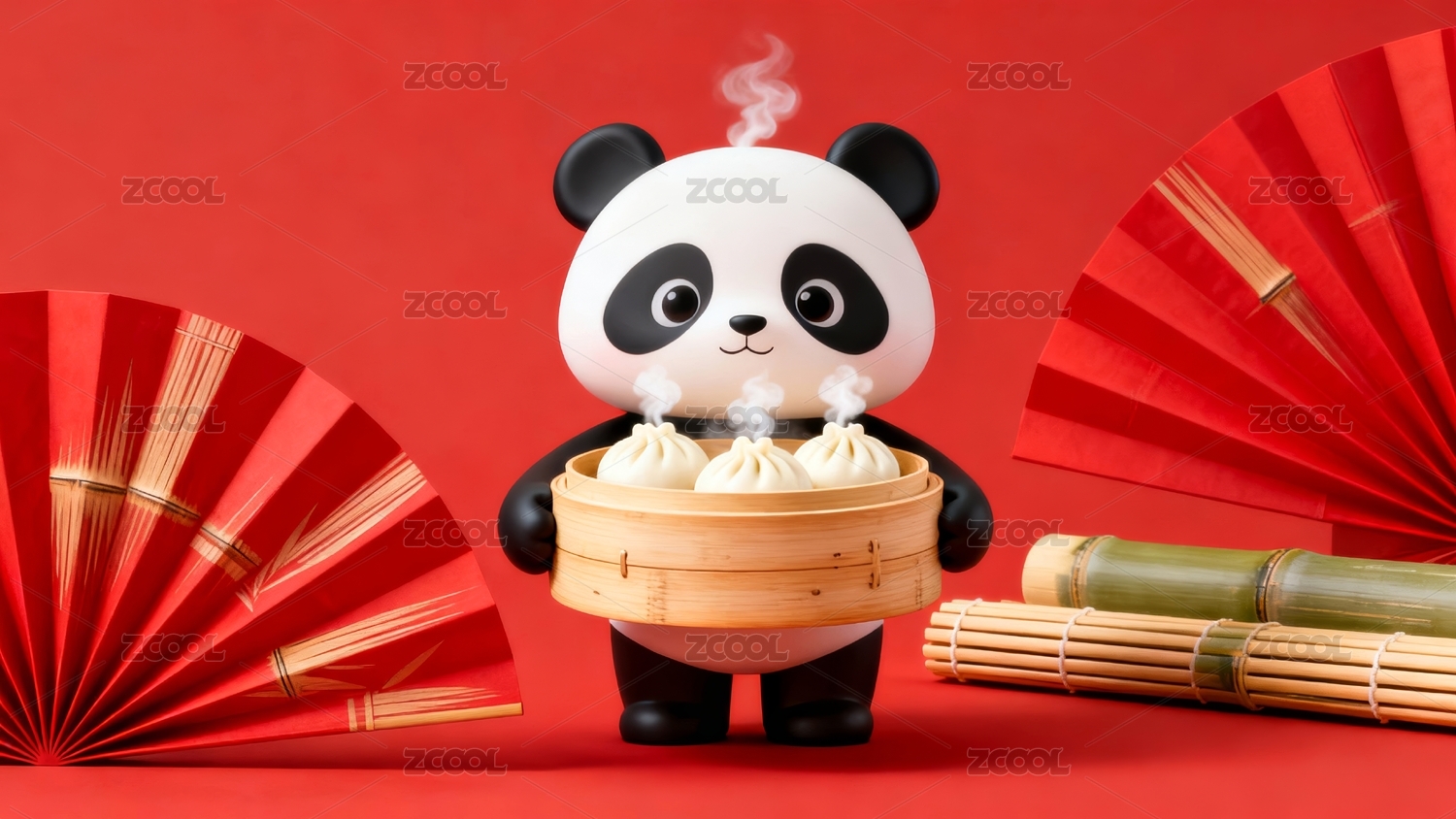 主视觉,商业,壁纸,场景,创意,背景,精致,设计,熊猫,包子