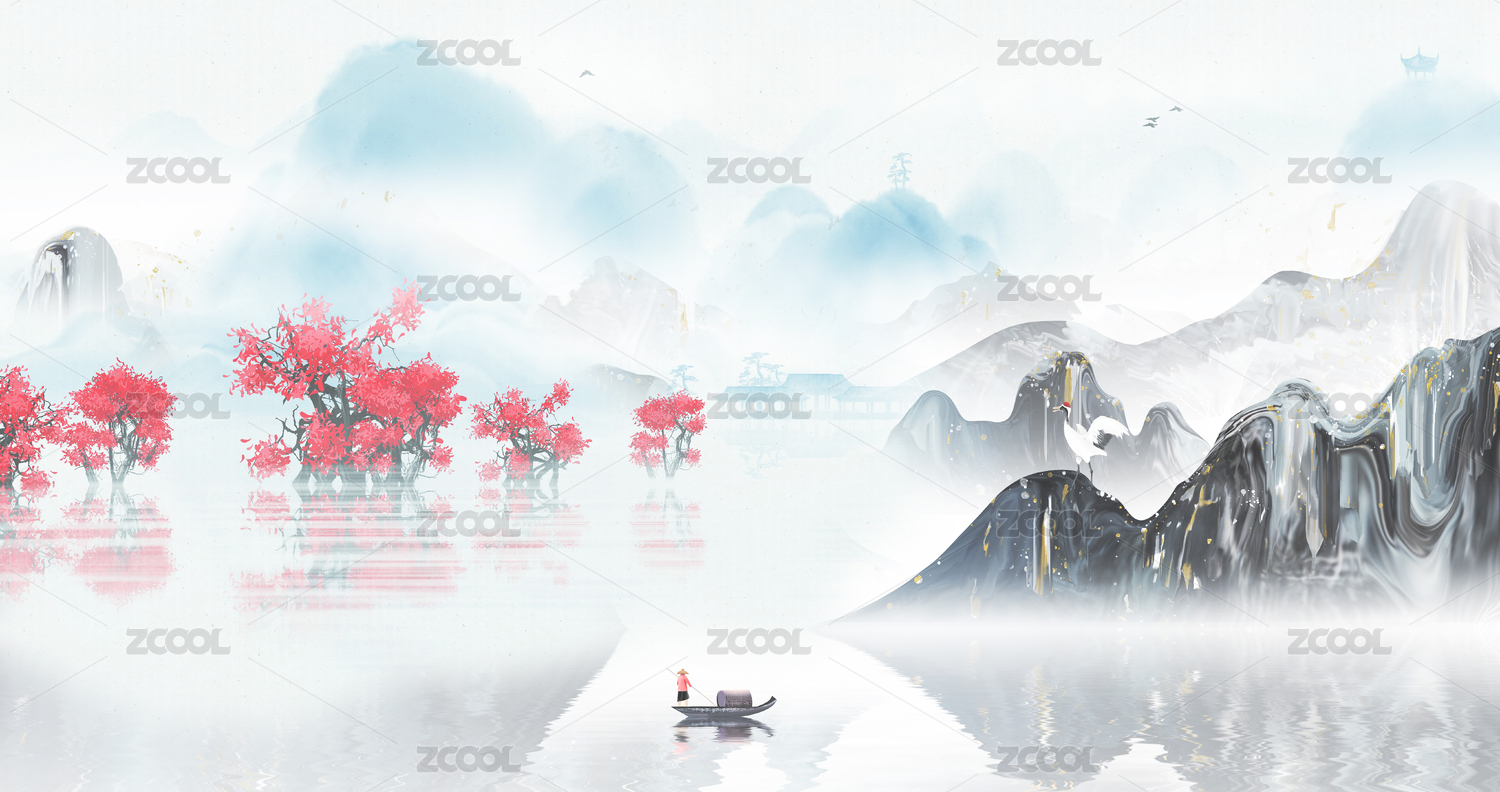 水墨江南山水画 禅意山水画 意境山水花鸟画水墨花鸟画