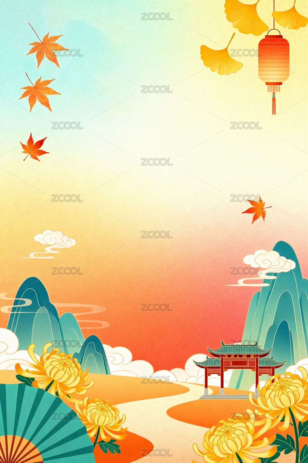 背景,素材,彩色,图案,国潮,清新,新鲜,金秋,彩绘,秋天