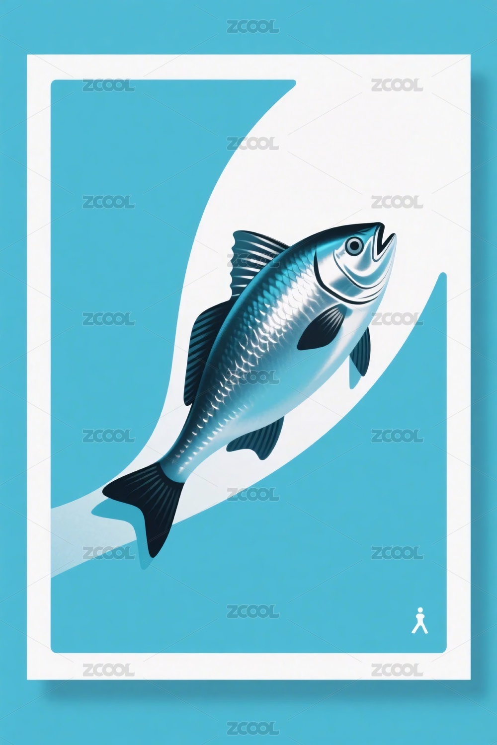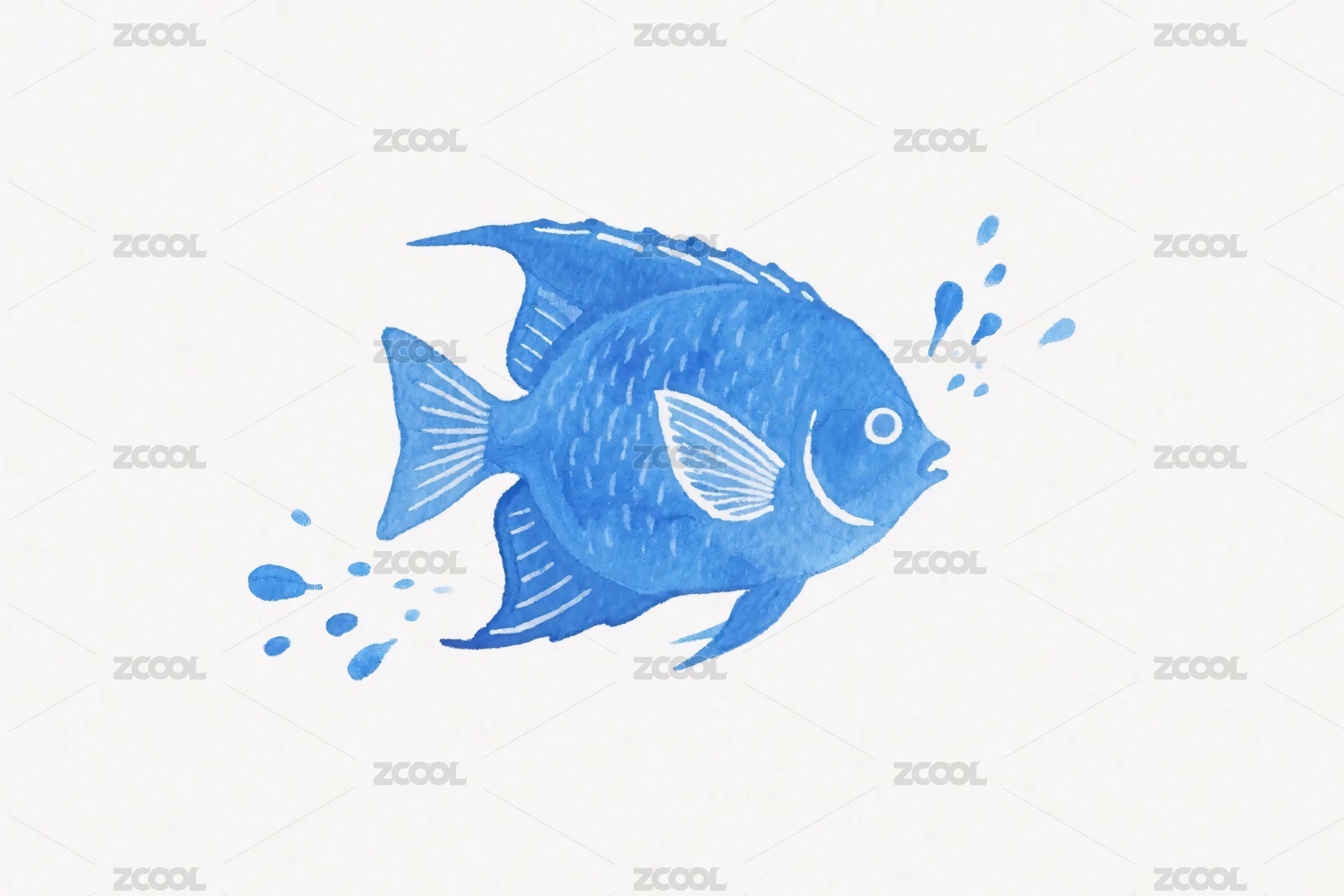 蓝色简约风格鱼插画