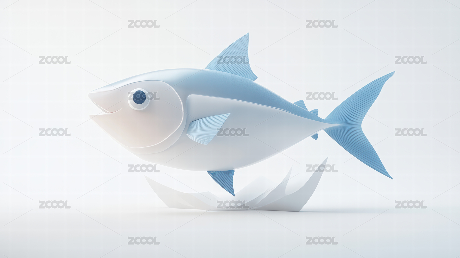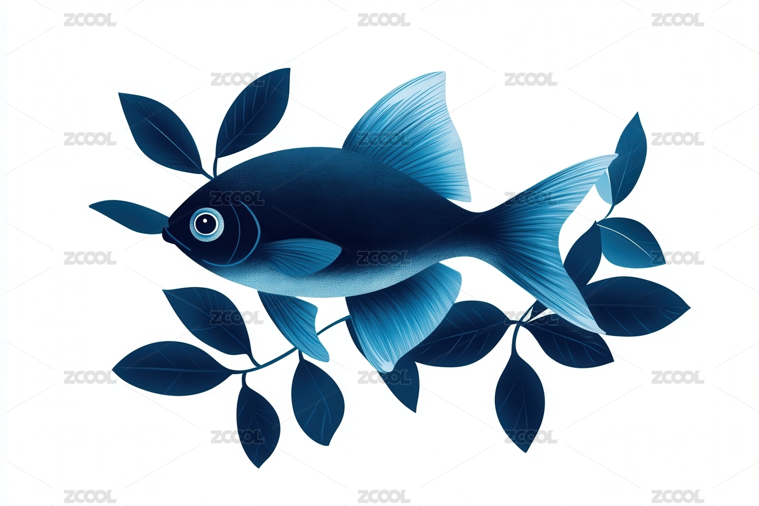 蓝白鱼配柠檬叶片图案