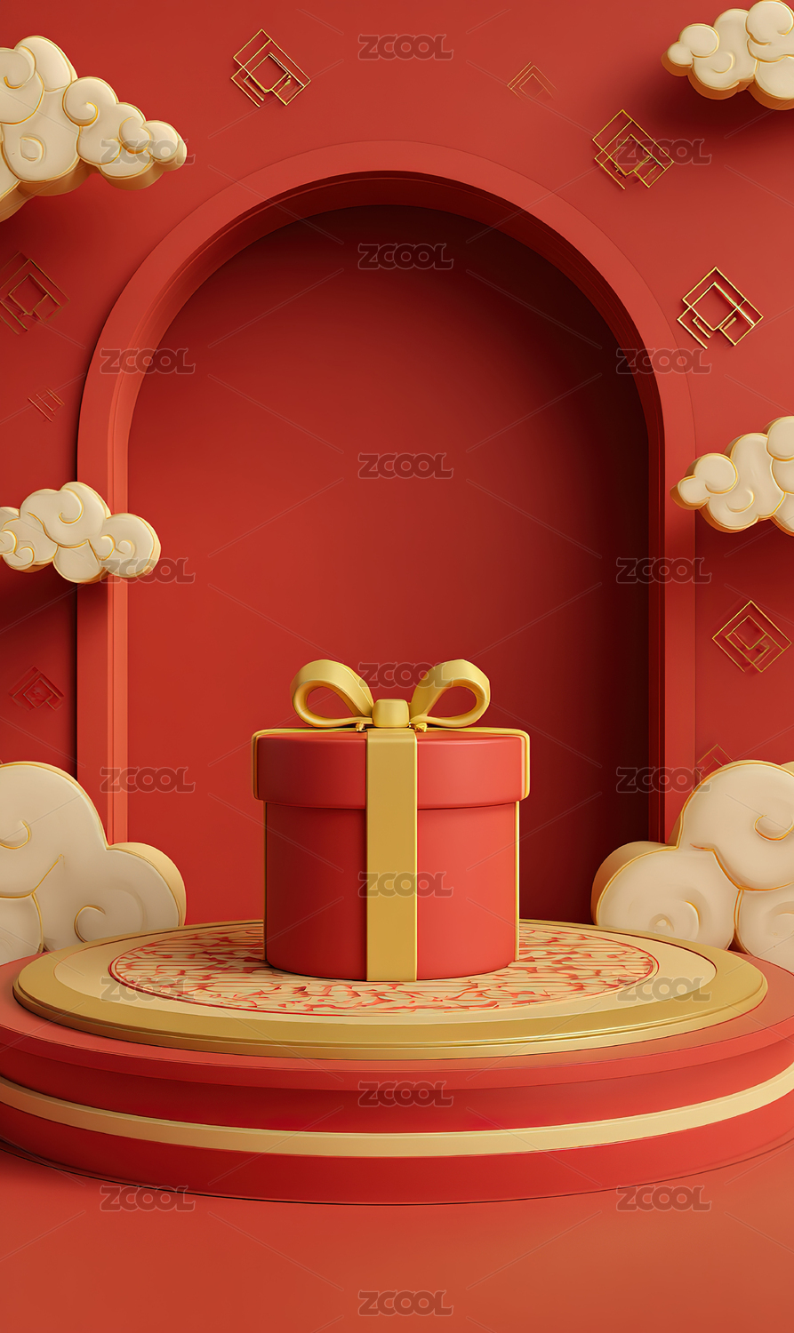 礼物,红包,金币,中式,传统,红色,金色,喜庆,插画,立体