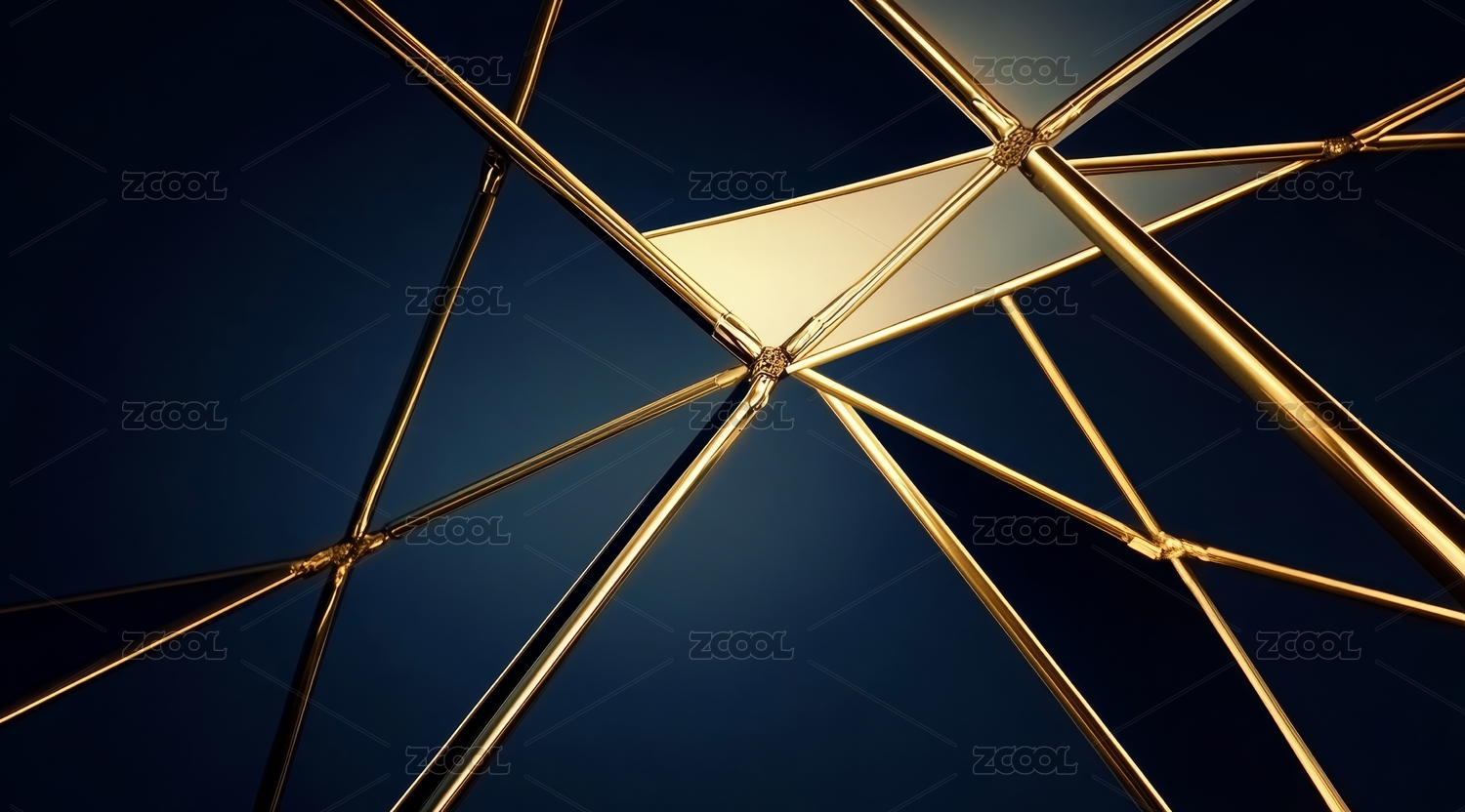 金色几何结构在深蓝背景下的艺术表现