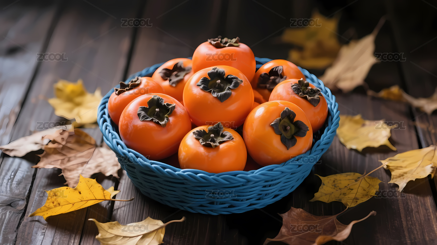 秋日丰收的柿子篮