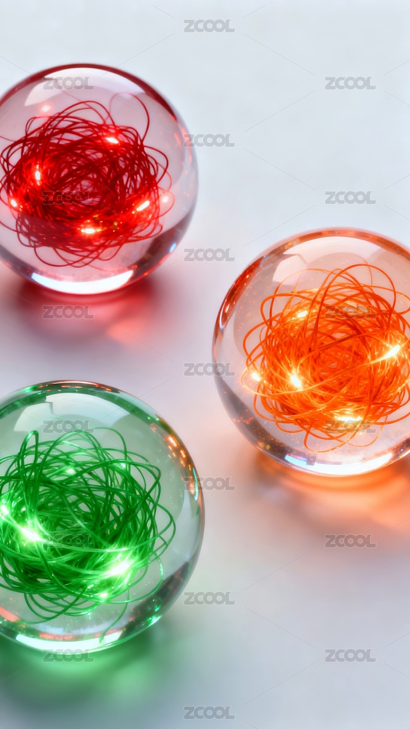 绿色与橙色交织的透明球体