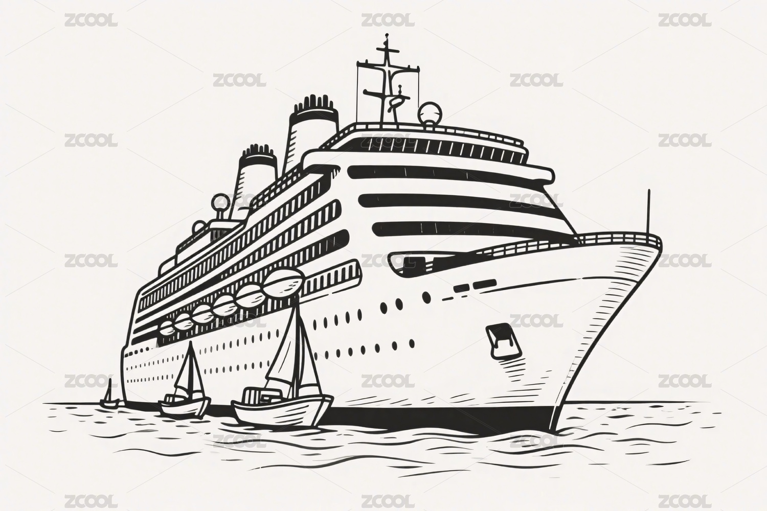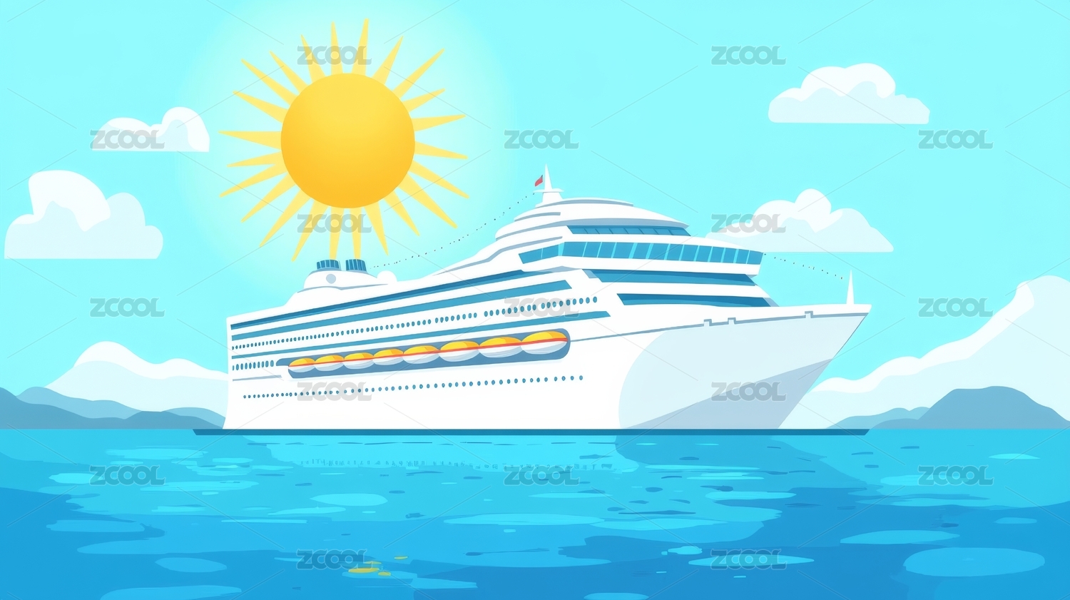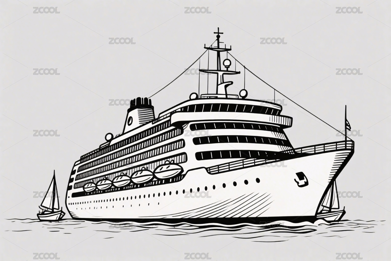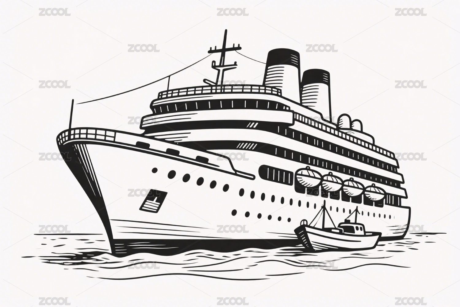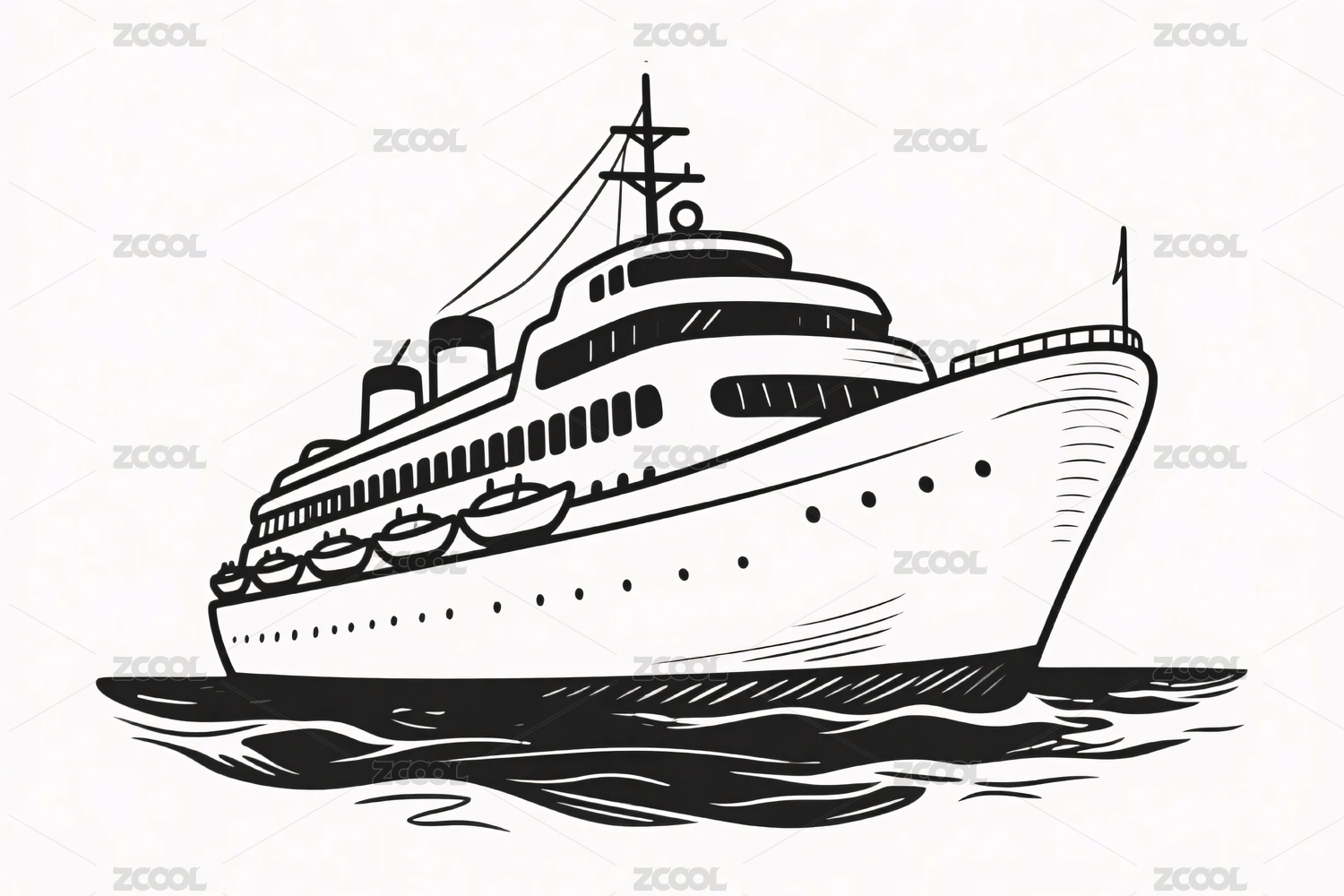 邮轮,海面,船只,插画,矢量,黑色,蓝色,海洋,航行,剪影