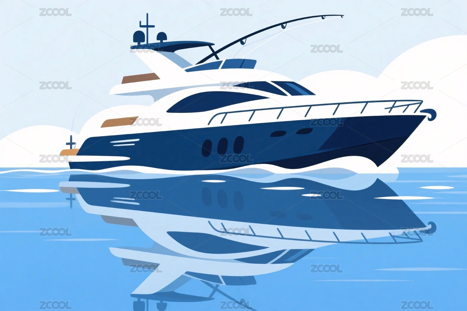 海上航行的豪华游艇插画