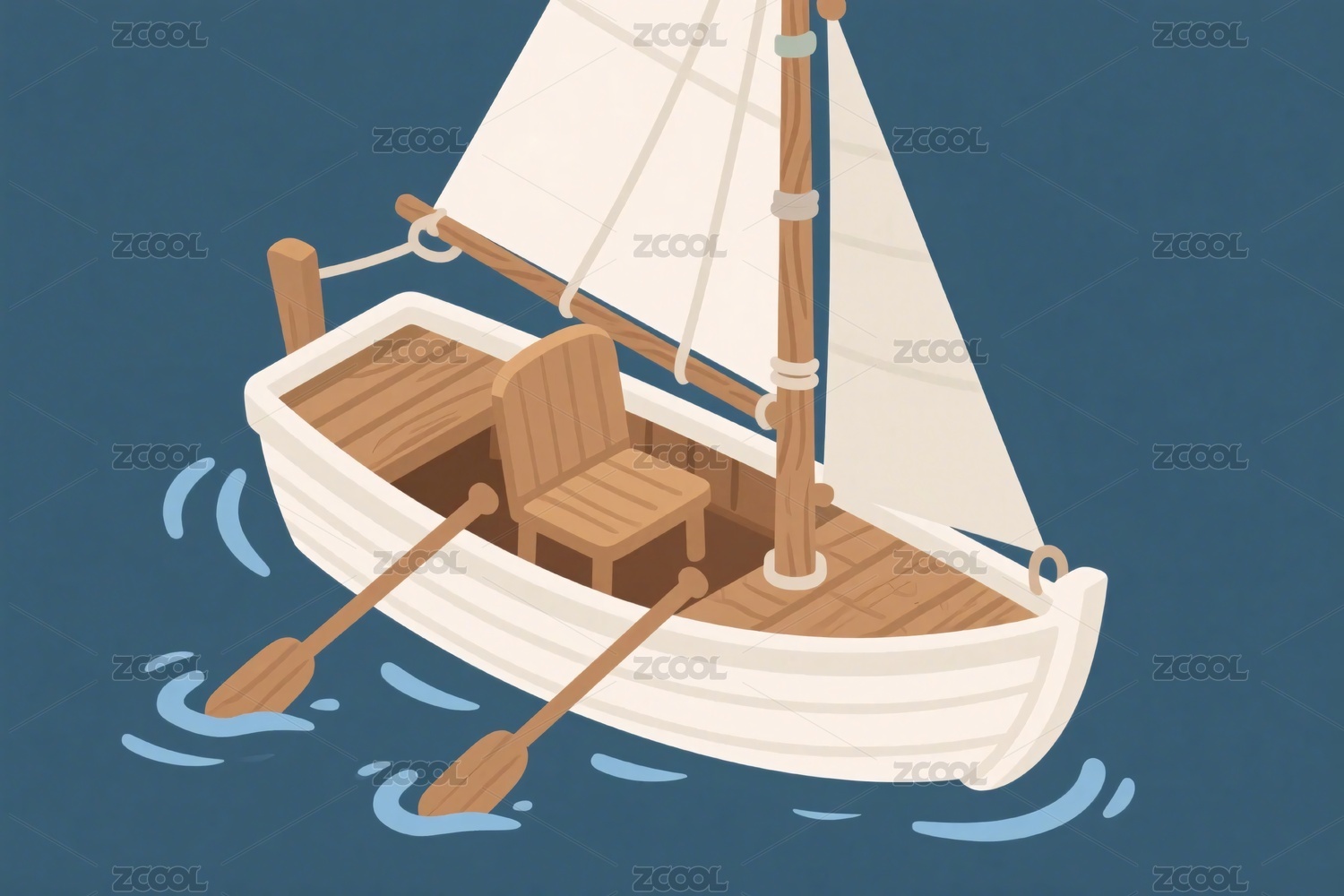 海上航行的简约帆船插画