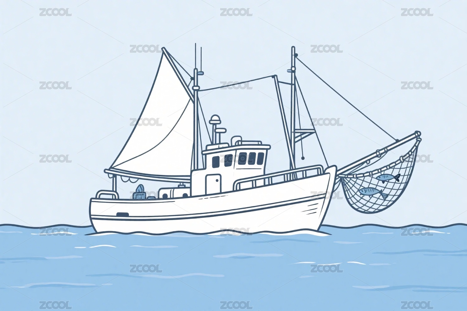 海上航行的捕鱼船只插画