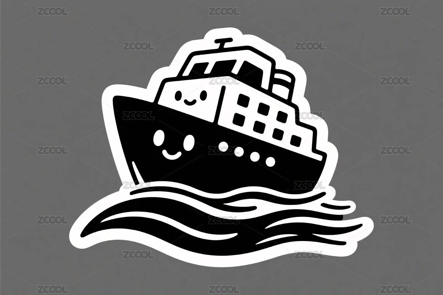 货船,线条画,插画,海上,运输,简约,图形,元素,轮廓,黑白