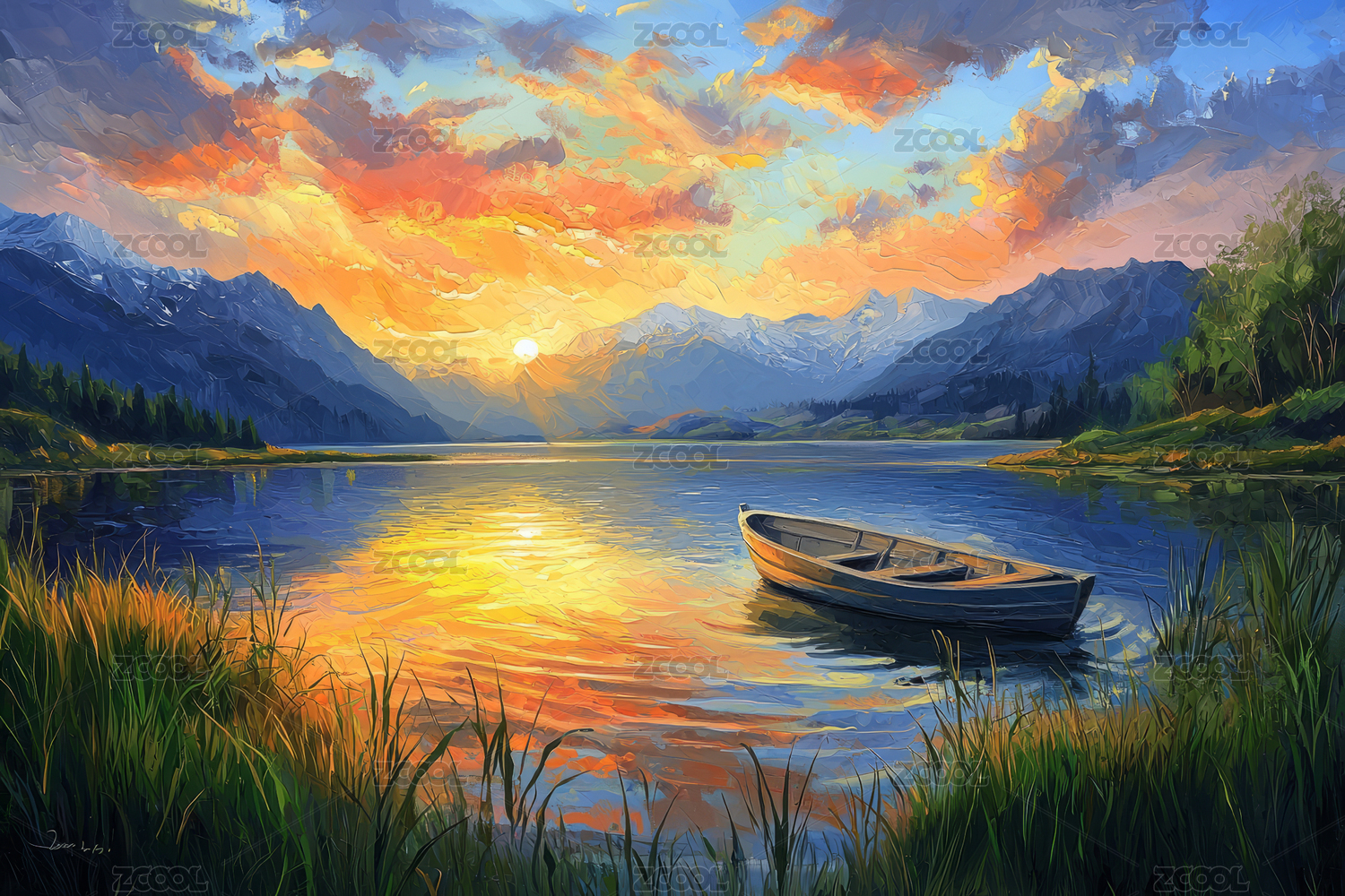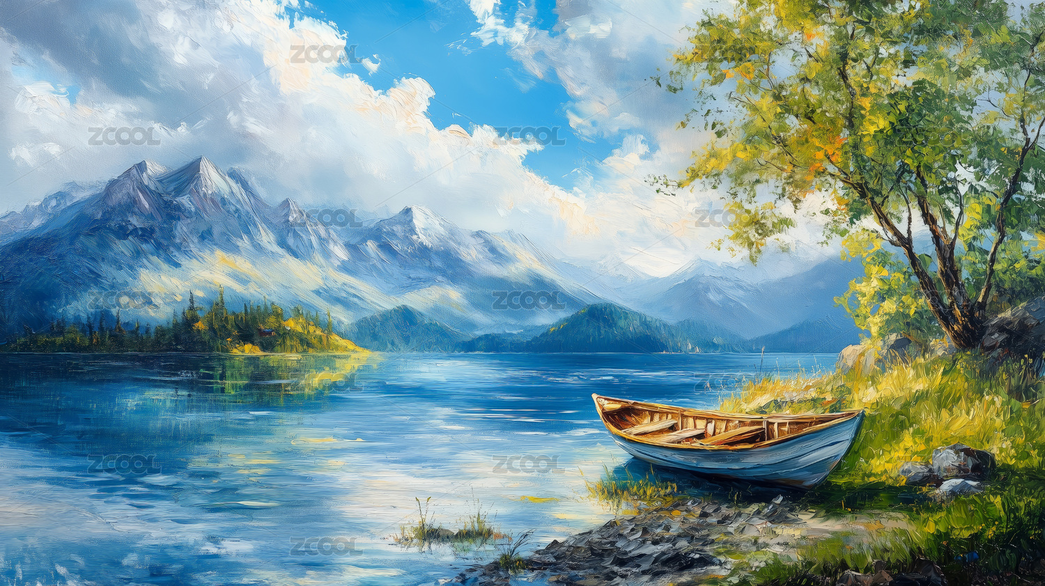 油画风格的湖边美景