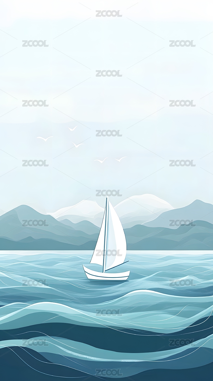 帆船,海洋,波浪,白色,蓝色,插画,航行,船只,水波,艺术