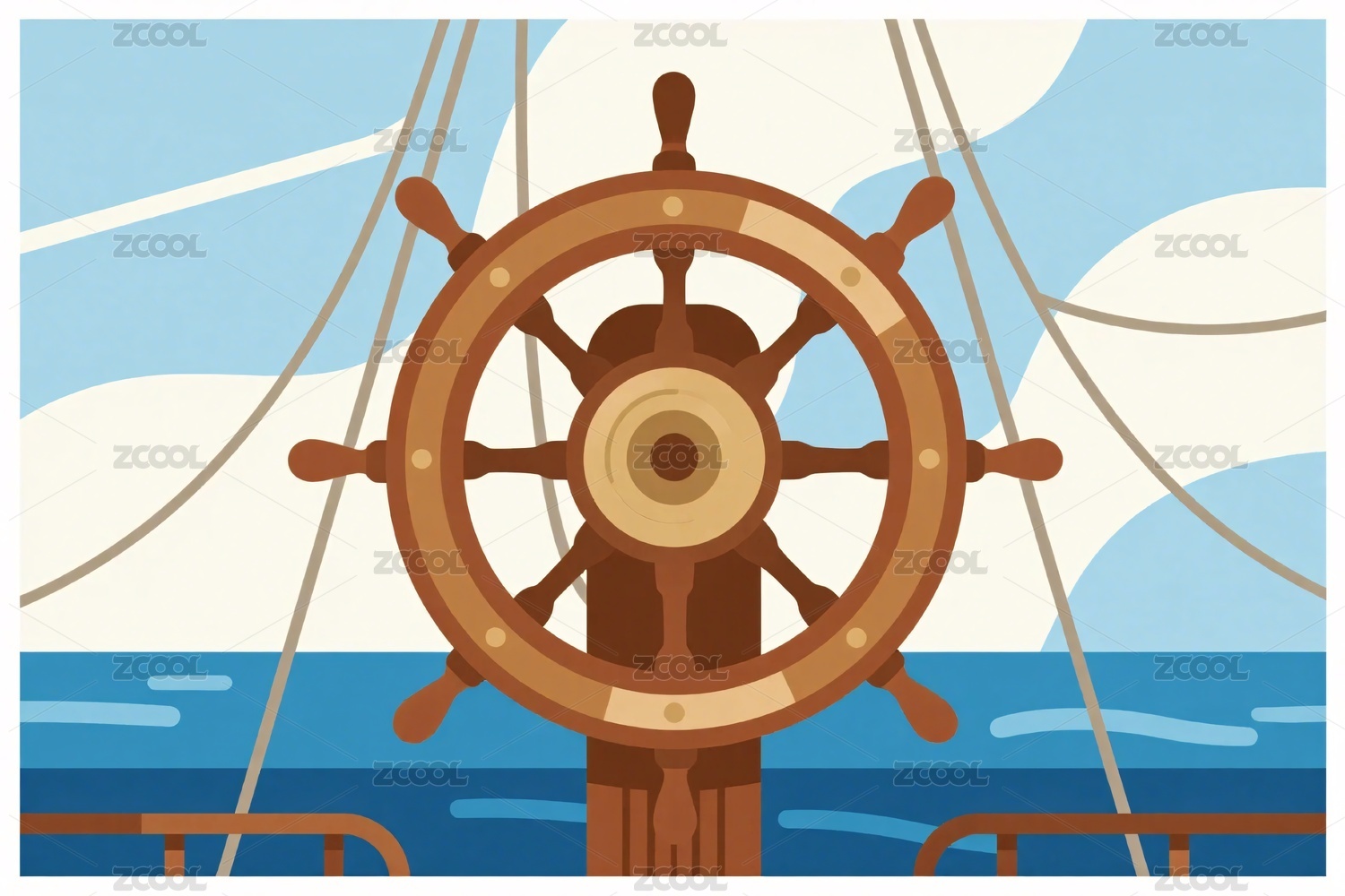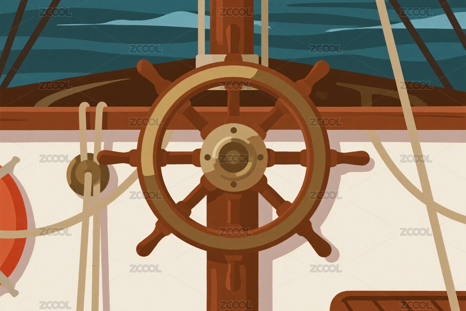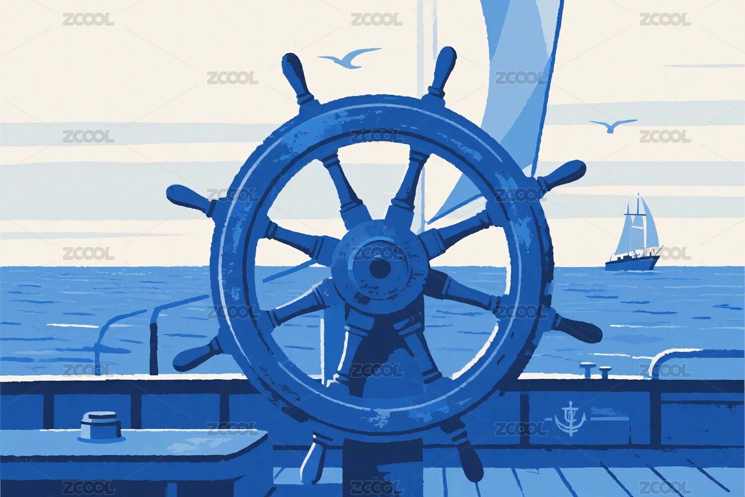 海上船舵插画风景
