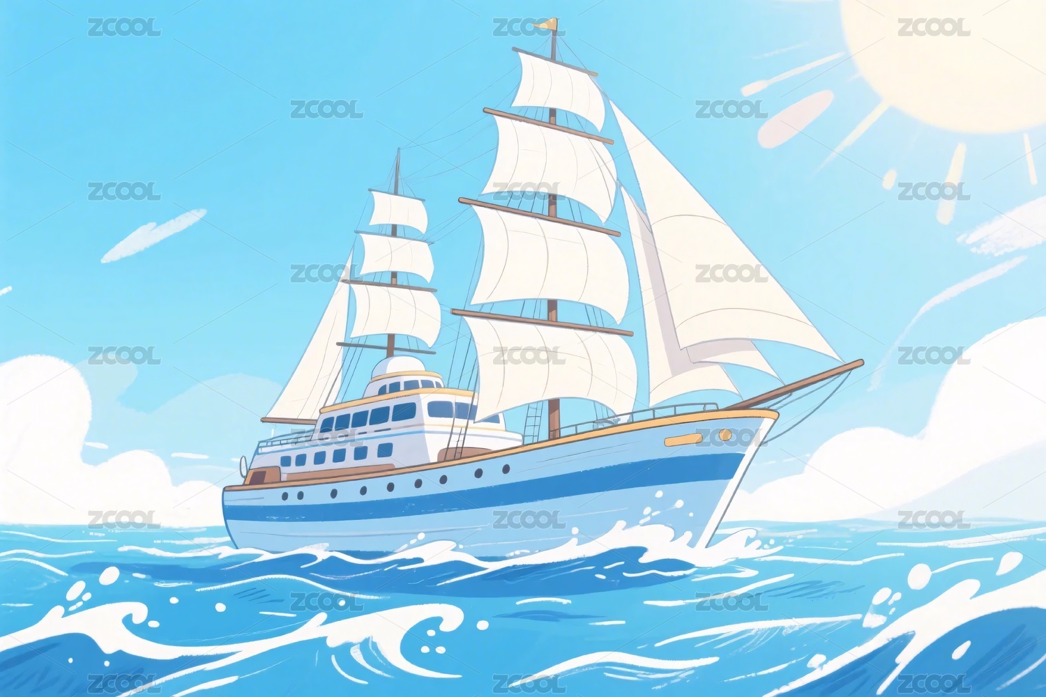 插画风格的海上帆船
