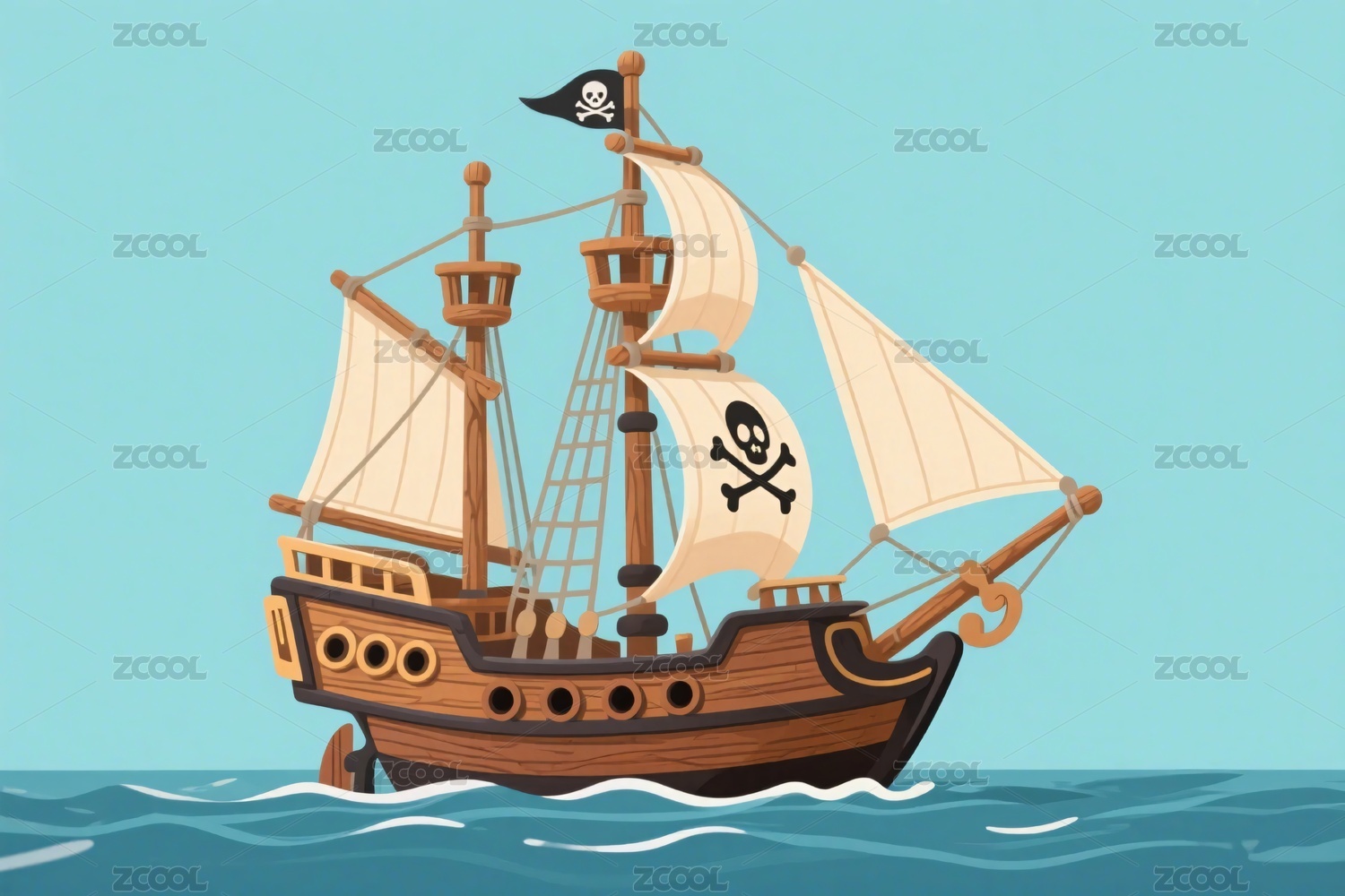 插画风格的海上海盗船