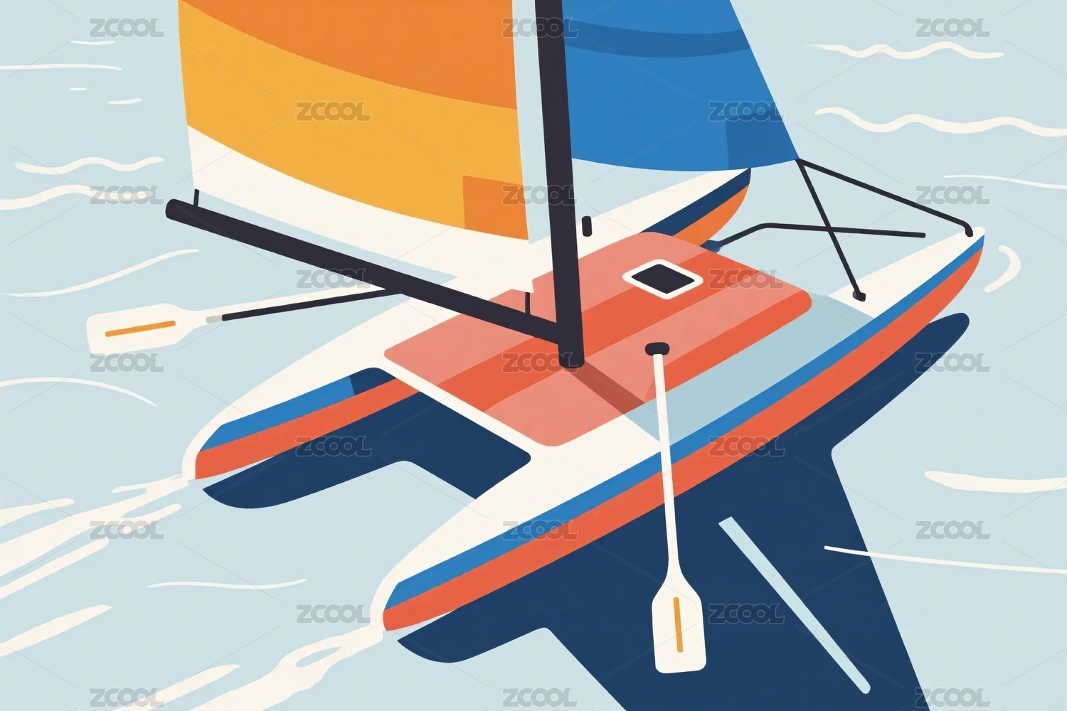 海上航行的双体帆船插画