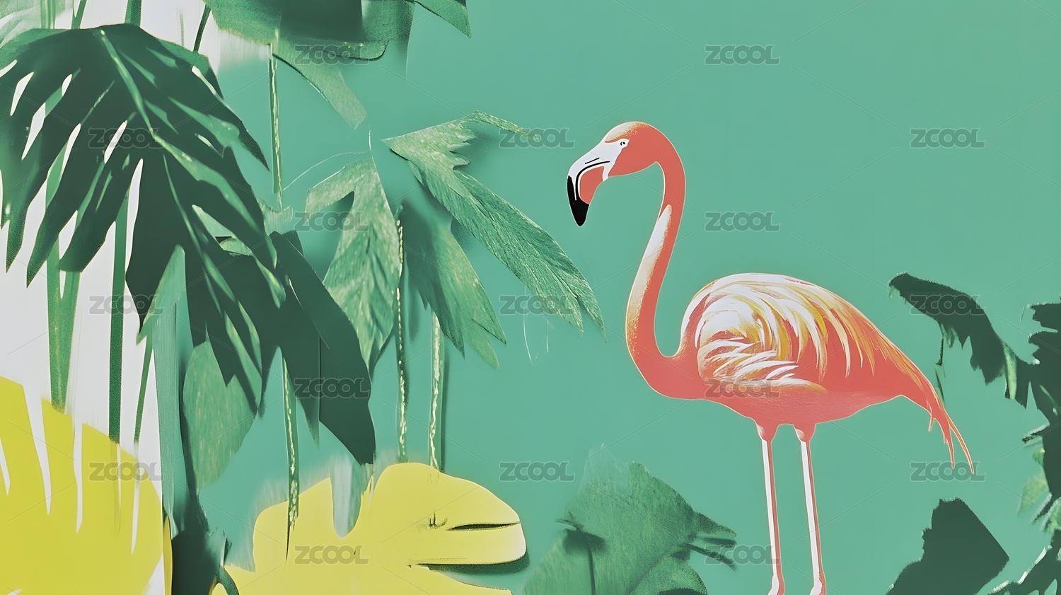 火烈鸟与龟背竹