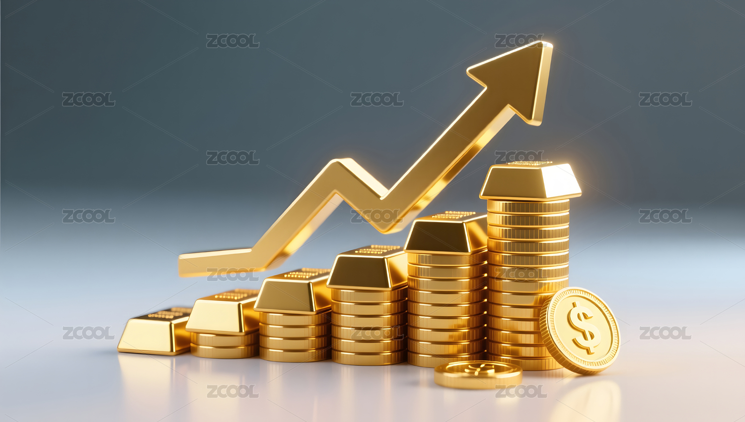 金色柱状图与上升箭头:金融增长的视觉呈现