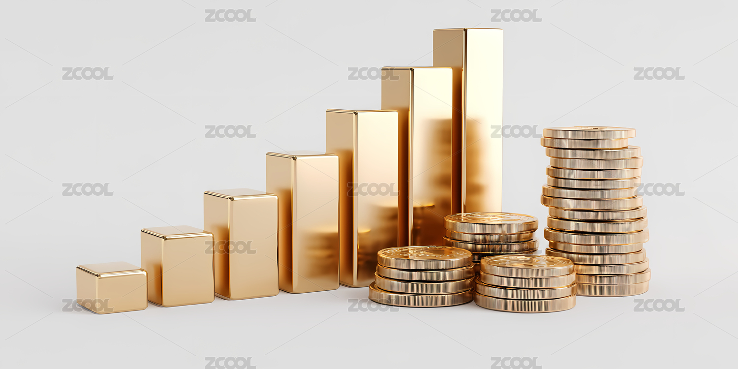 主视觉,商业,壁纸,场景,背景,金色,图表,上升,金币,柱状