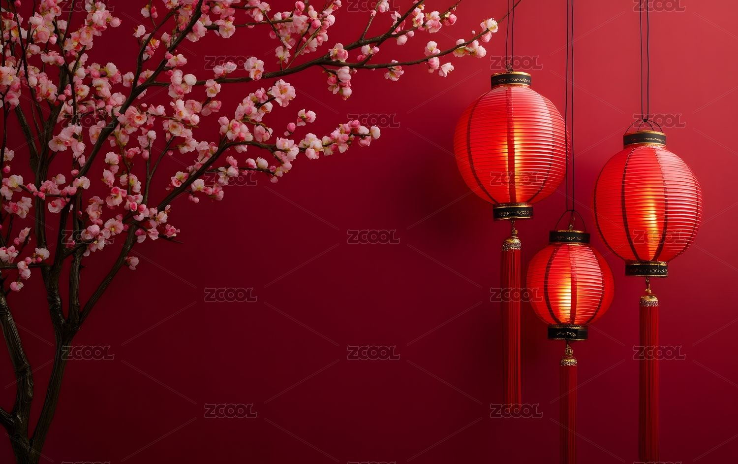 装饰,红色,背景,节日,枝条,传统,灯笼,花朵,喜庆,庆典