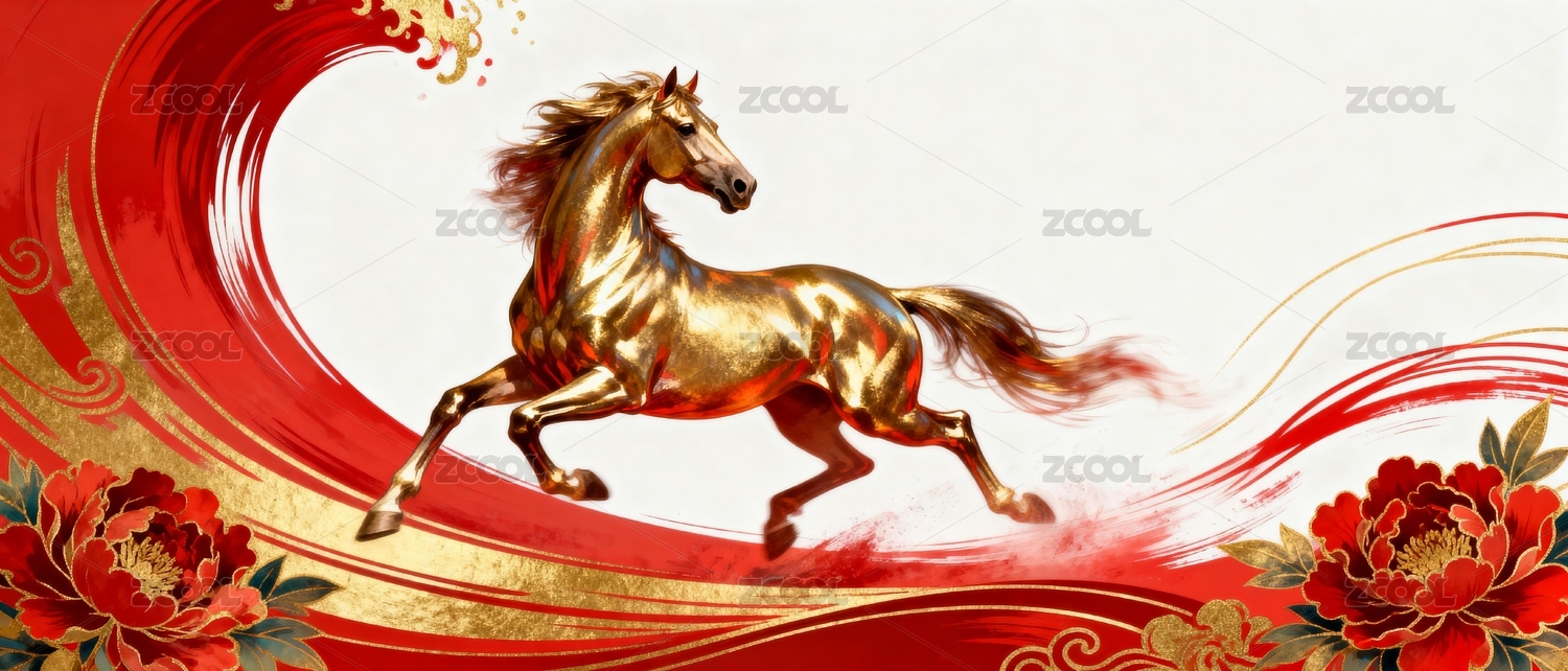 马,红色,背景,奔跑,装饰,花纹,传统,图案,文化,金色