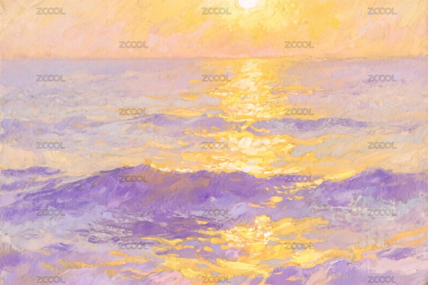 大海,海浪,日落,阳光,天空,绘画,艺术,插画,色彩,美景