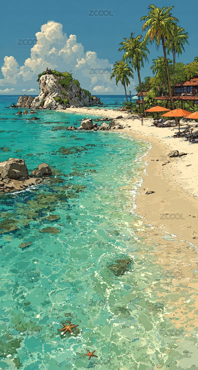 海滩,海岛,海水,蓝天,白云,椰子树,自然景观,度假胜地,风景,海洋