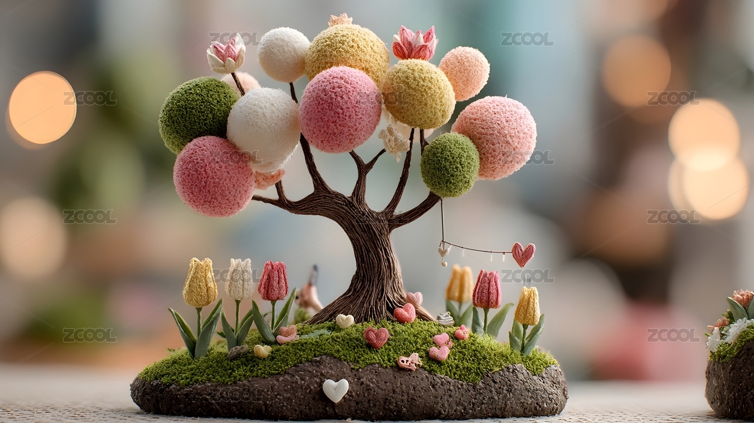 绒球树与郁金香的微景观