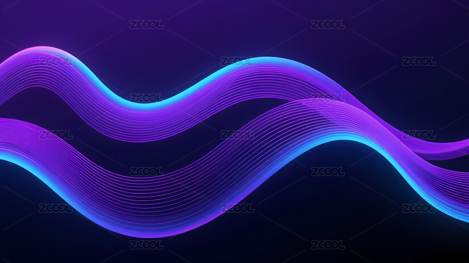 紫蓝渐变波浪线深蓝背景