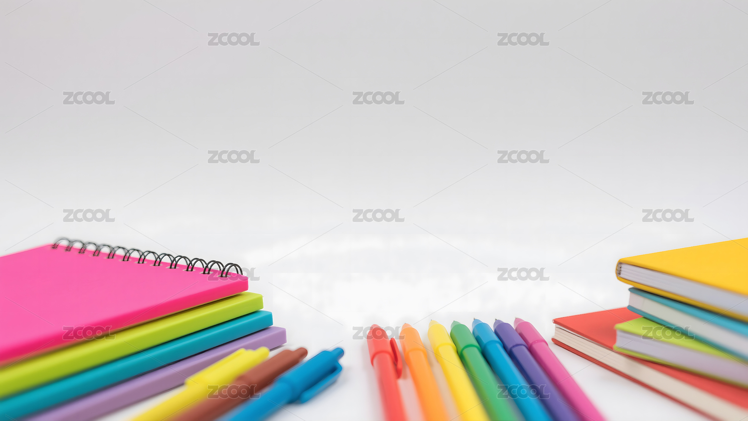 彩色书籍与文具静物摆拍