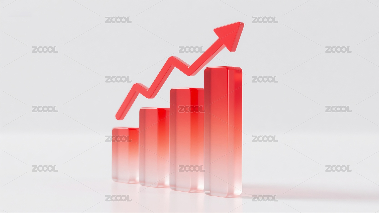红金色渐变玻璃质感金融柱状图增长箭头背景