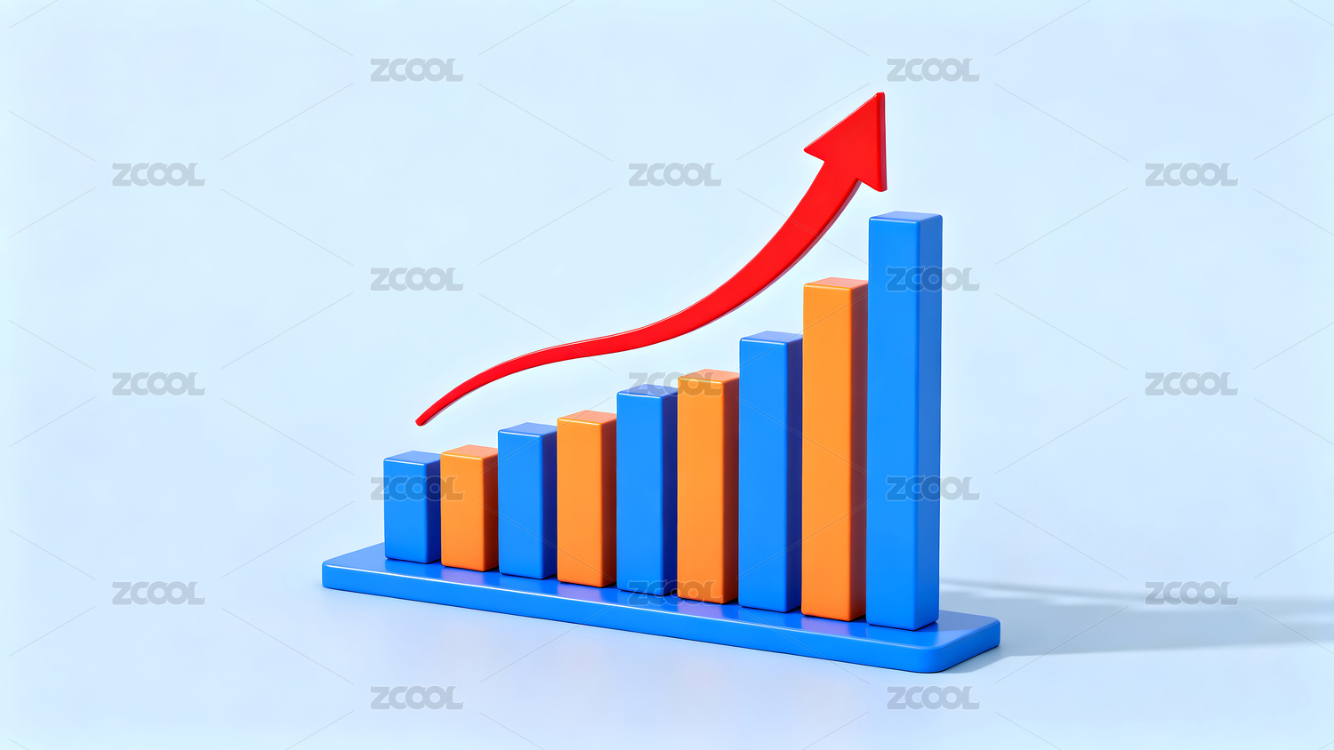橙色渐变玻璃质感金融柱状图增长箭头背景