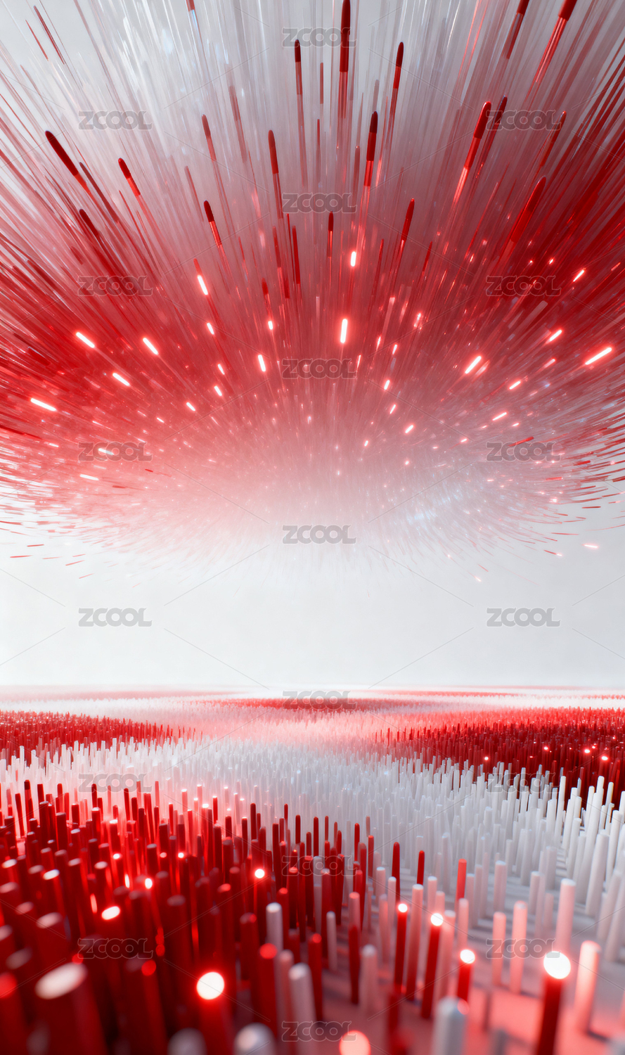 3D无数红色细小条块组成的空间主视觉背景