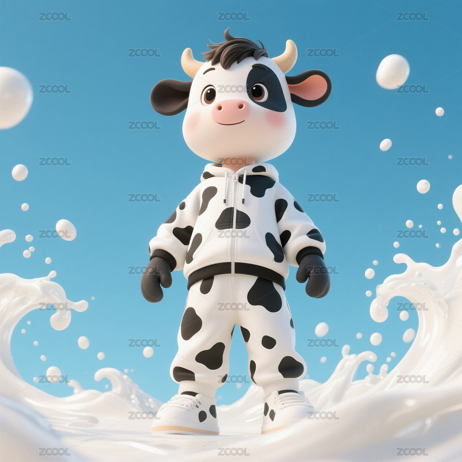 站在牛奶里穿衣服的奶牛宝宝动漫卡通形象